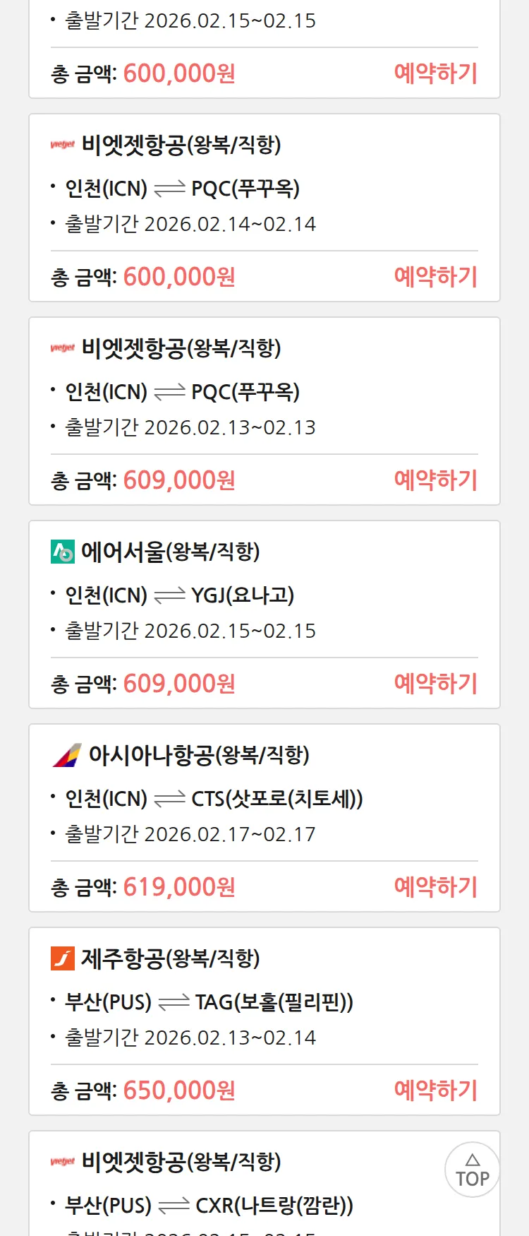 (1월 30일(금)) 땡처리 99.9% 확정 패키지
