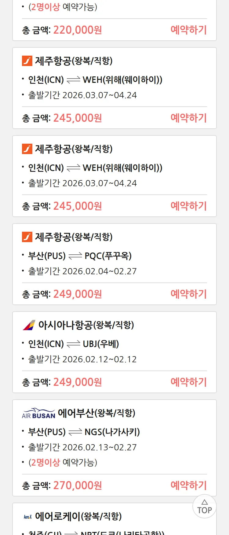 (2월1일(일)) 땡처리 99.9% 확정 패키지