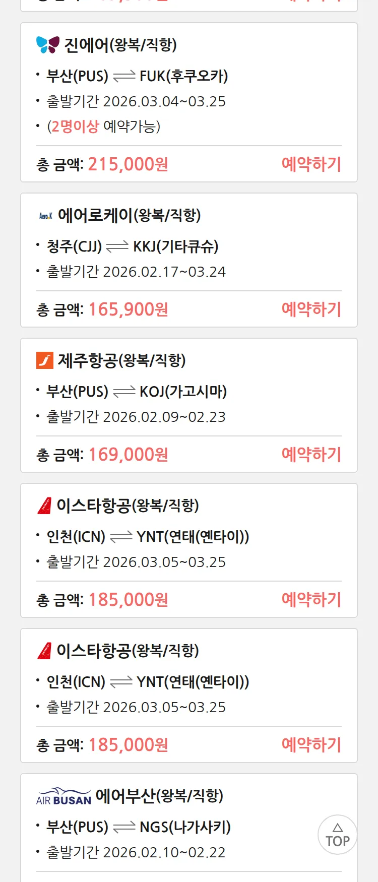 (2월1일(일)) 모두투어 일본 특가 항공권