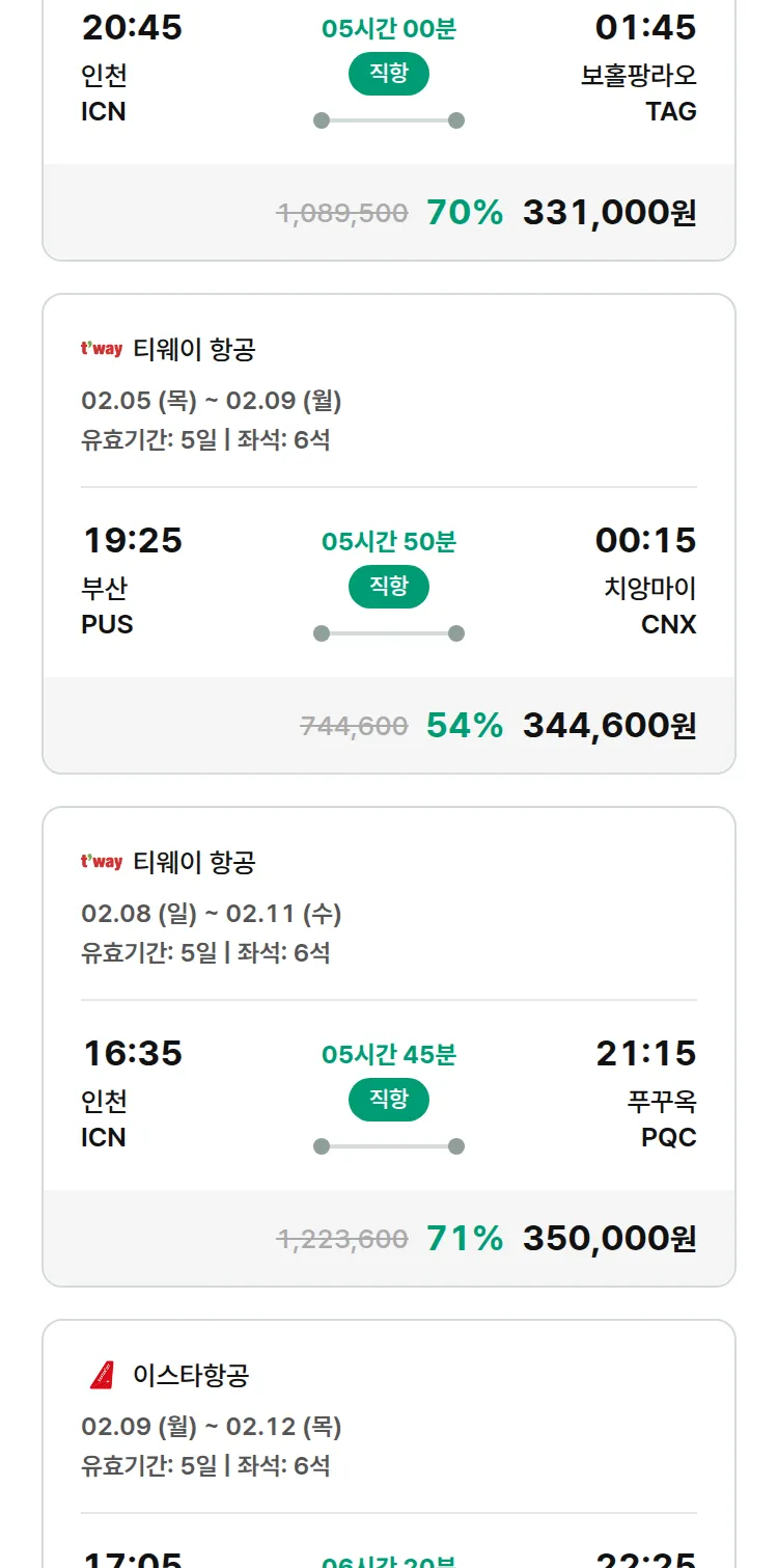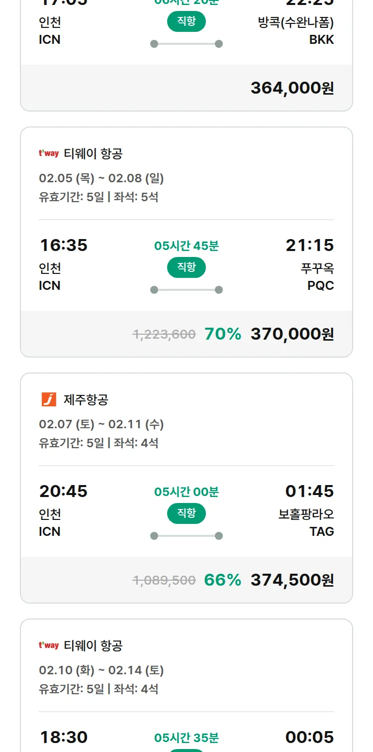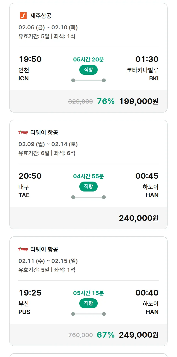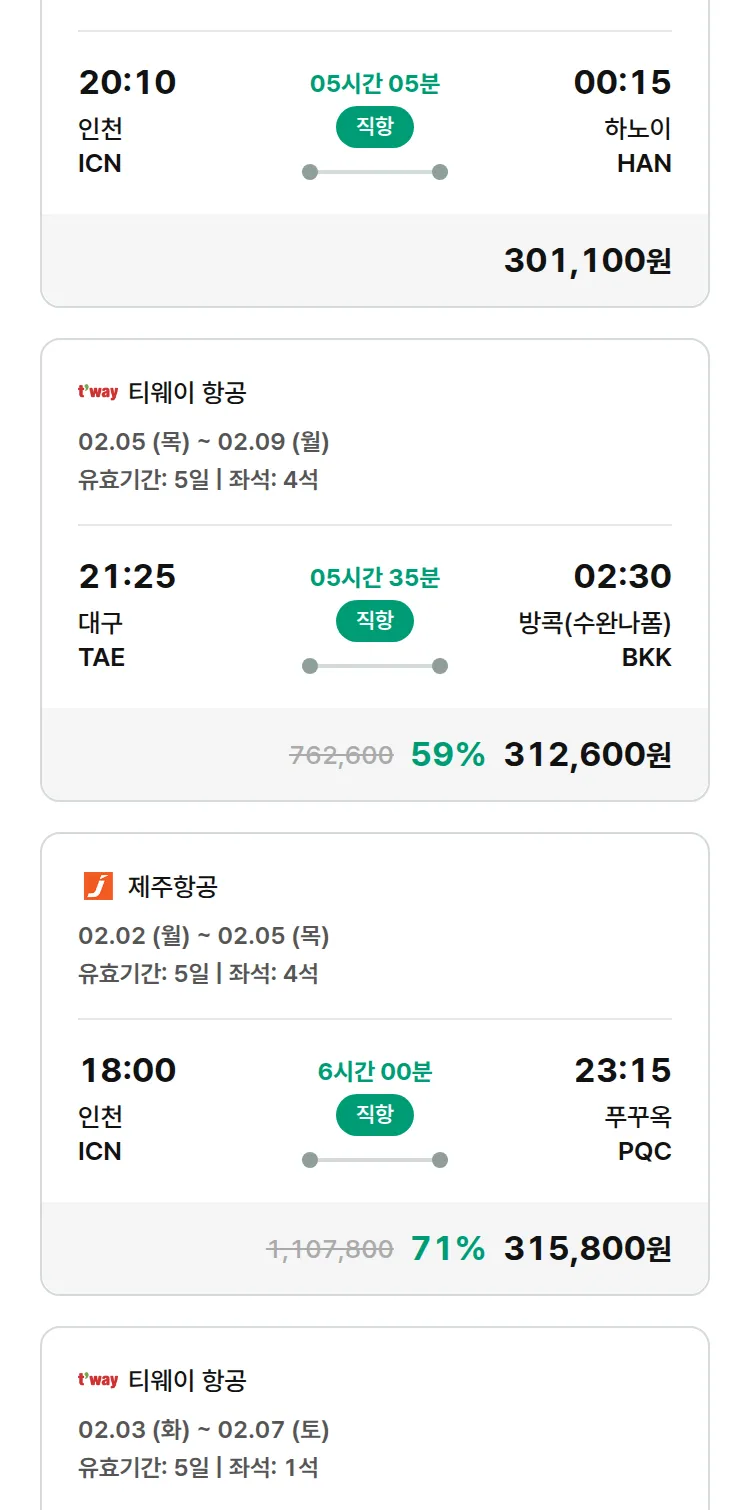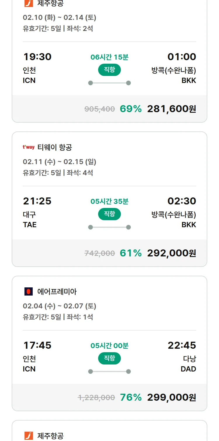 (1월 30일(금)) 땡처리 특가 항공권