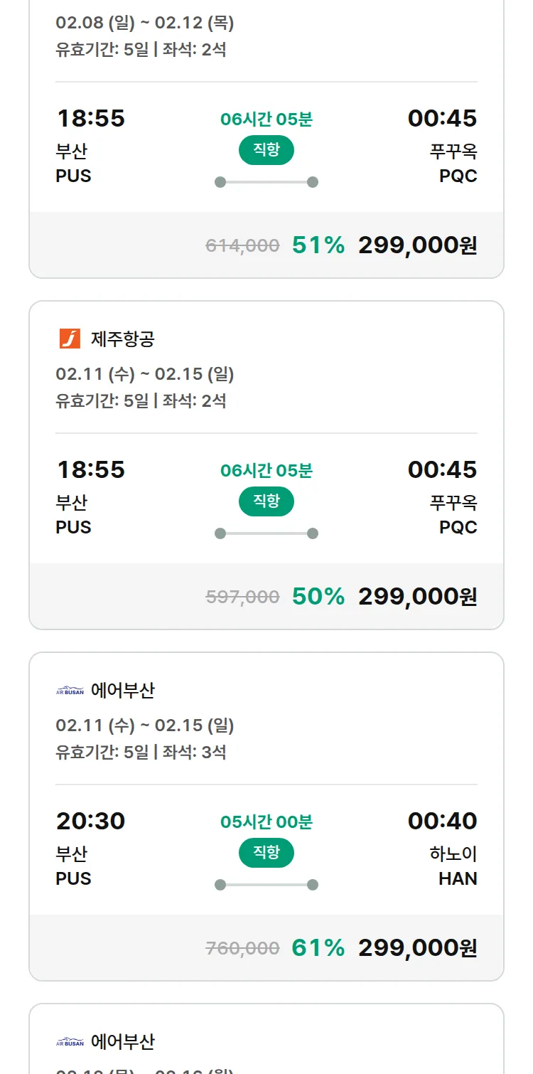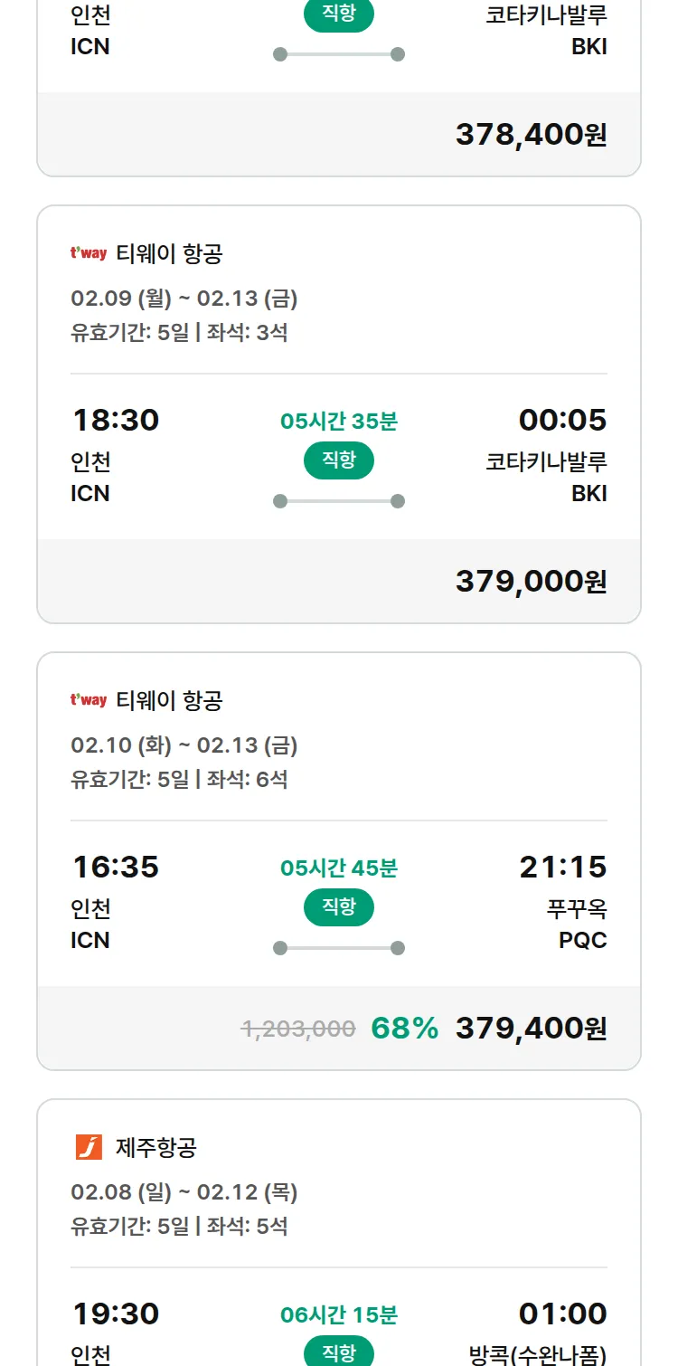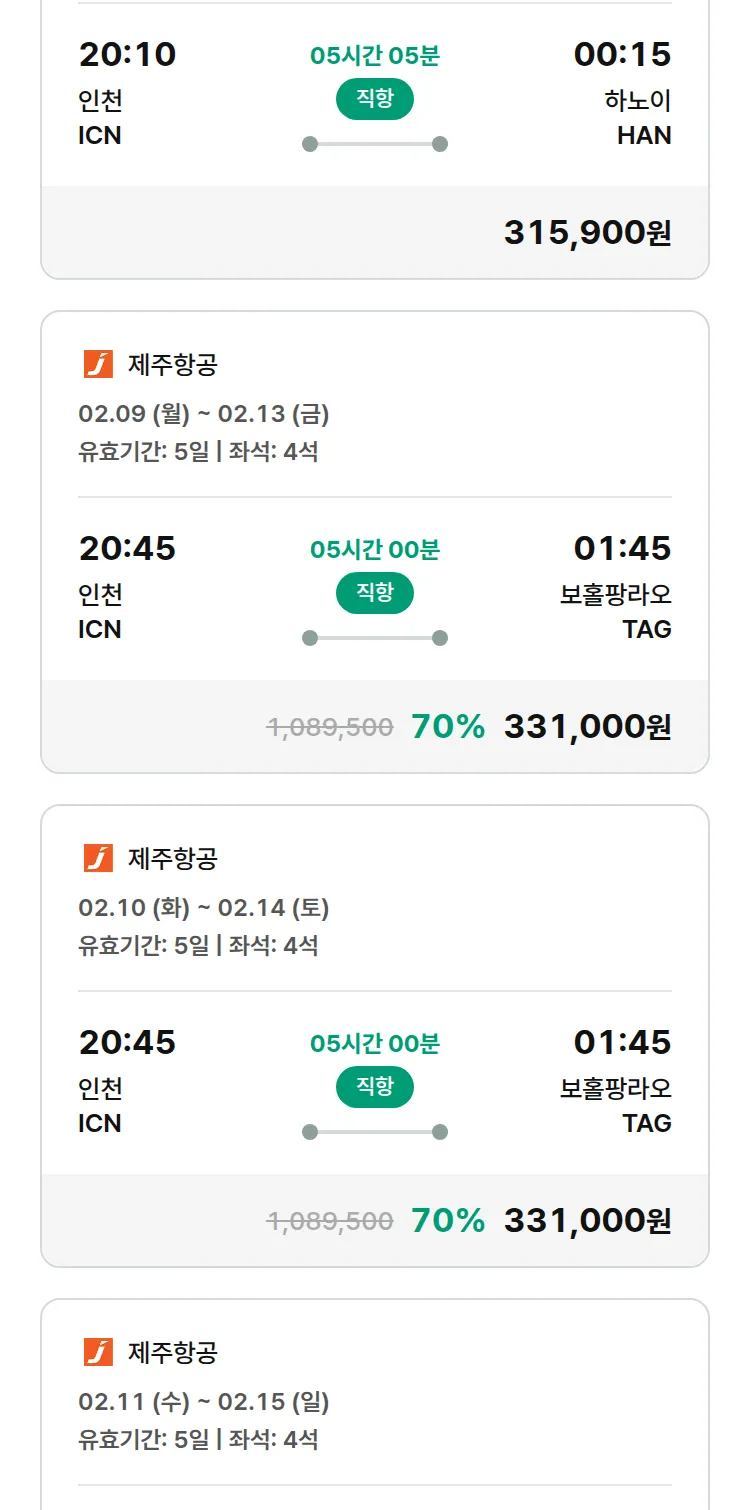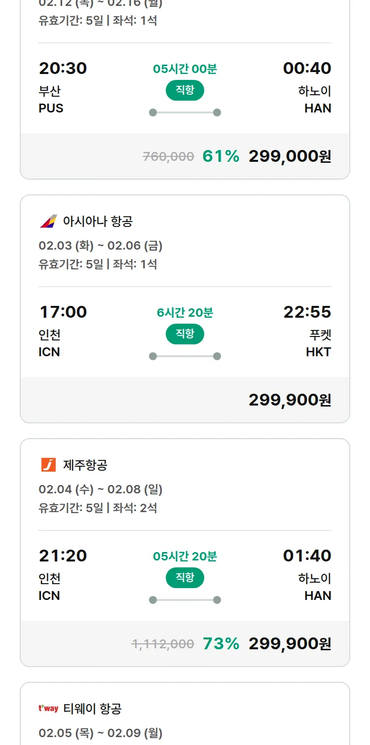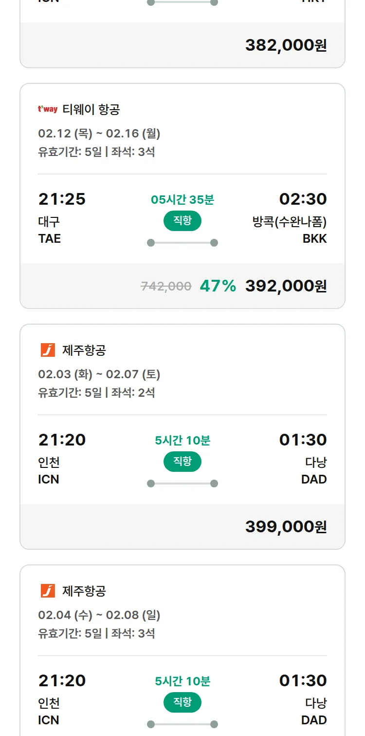 (1월 30일(금)) 땡처리 특가 항공권
