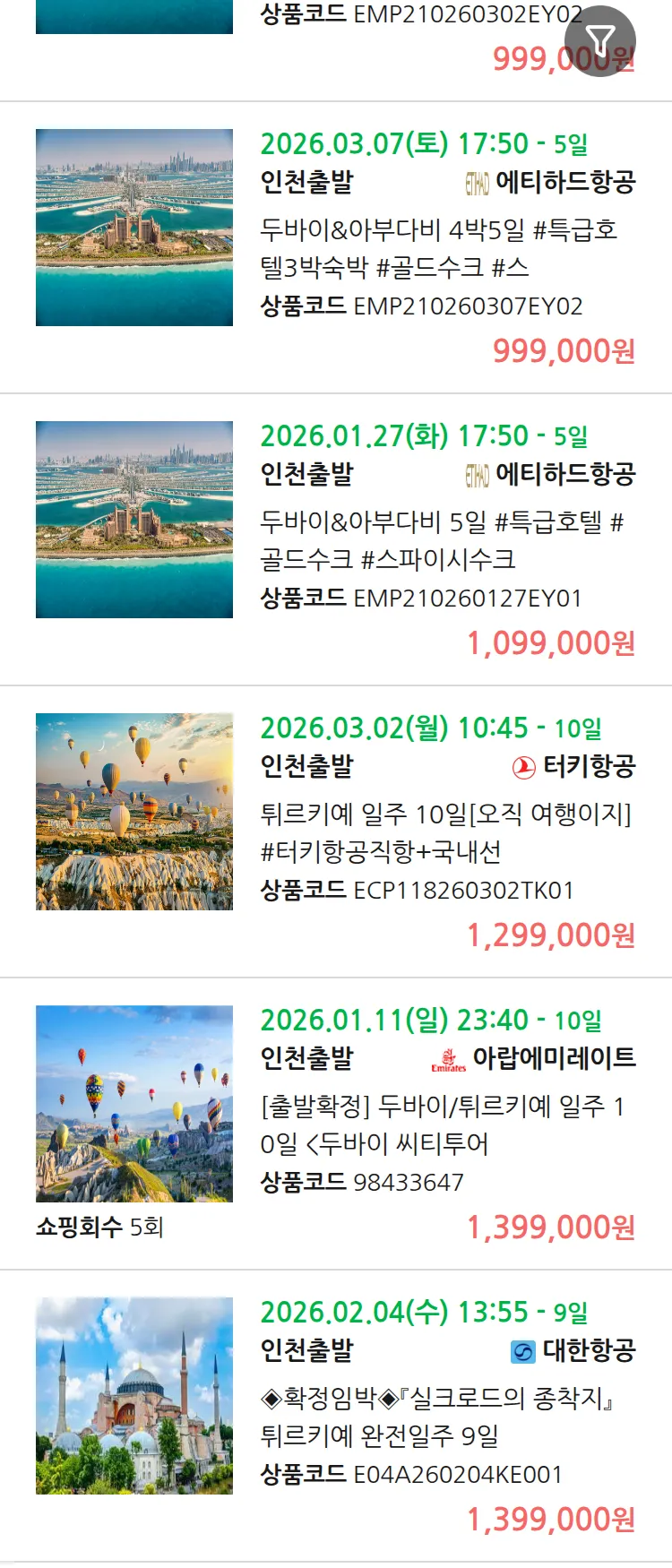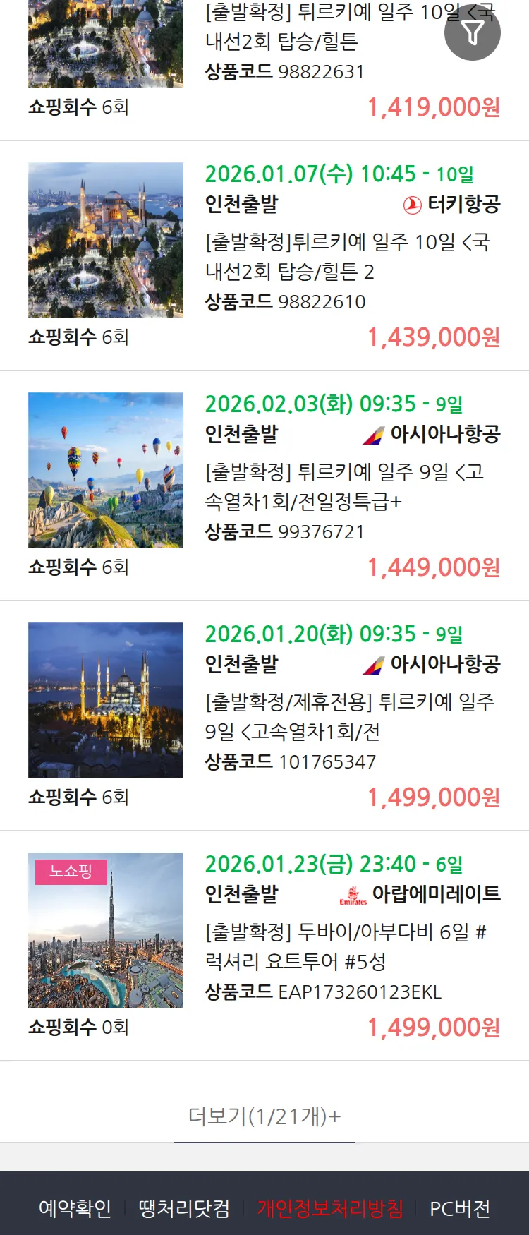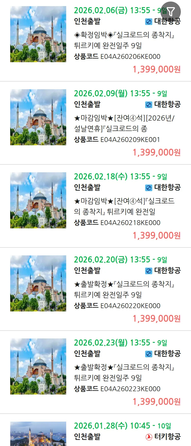 (1월2일(금)) 땡처리 99.9% 확정 패키지