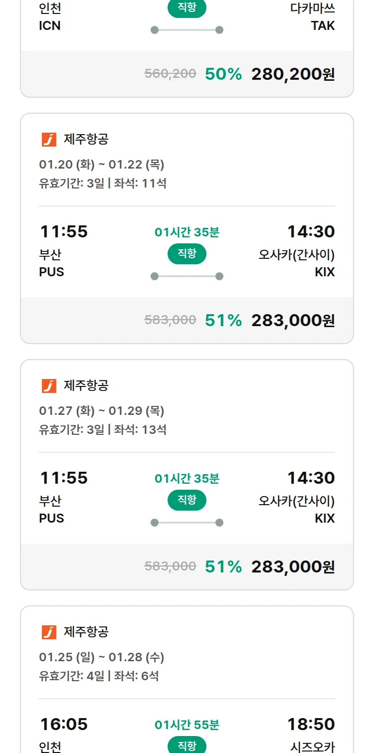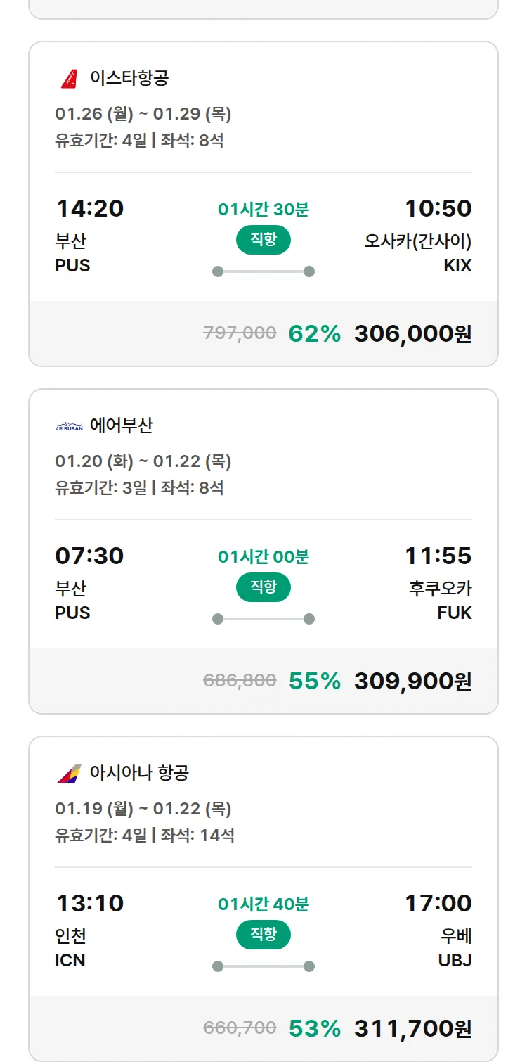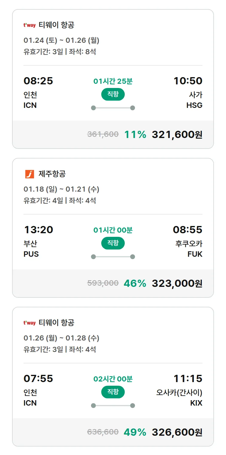 (1월2일(금)) 땡처리 특가 항공권