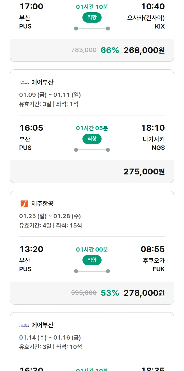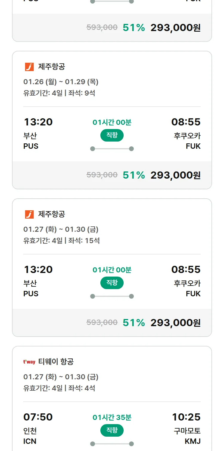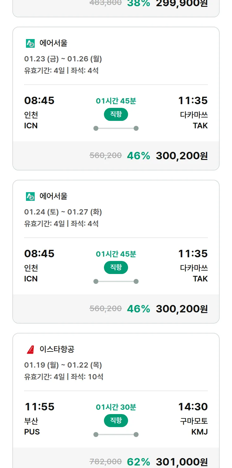 (1월2일(금)) 땡처리 특가 항공권
