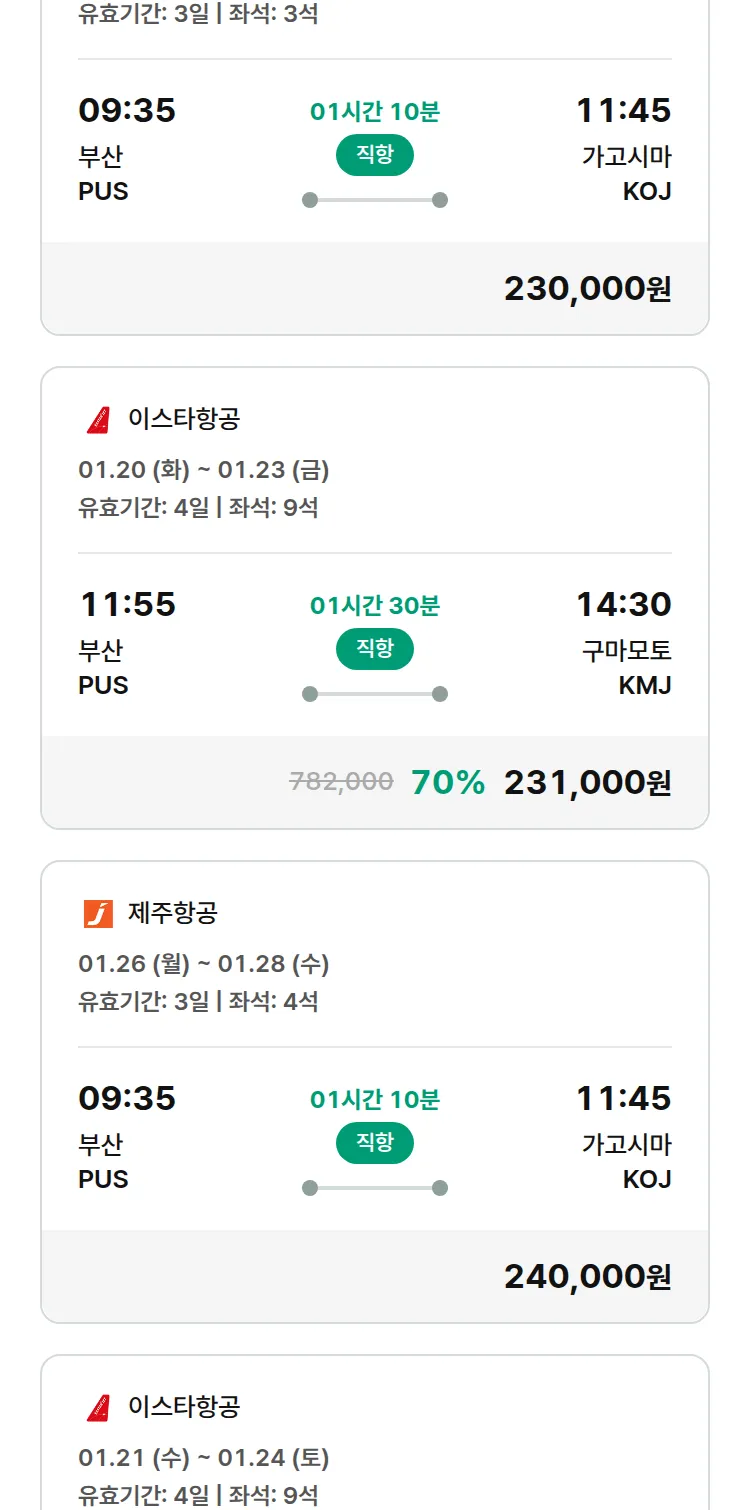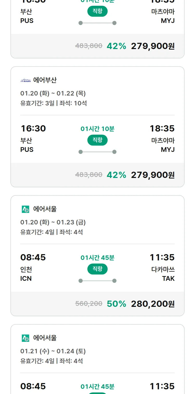 (1월1일(목)) 모두투어 일본 특가 항공권