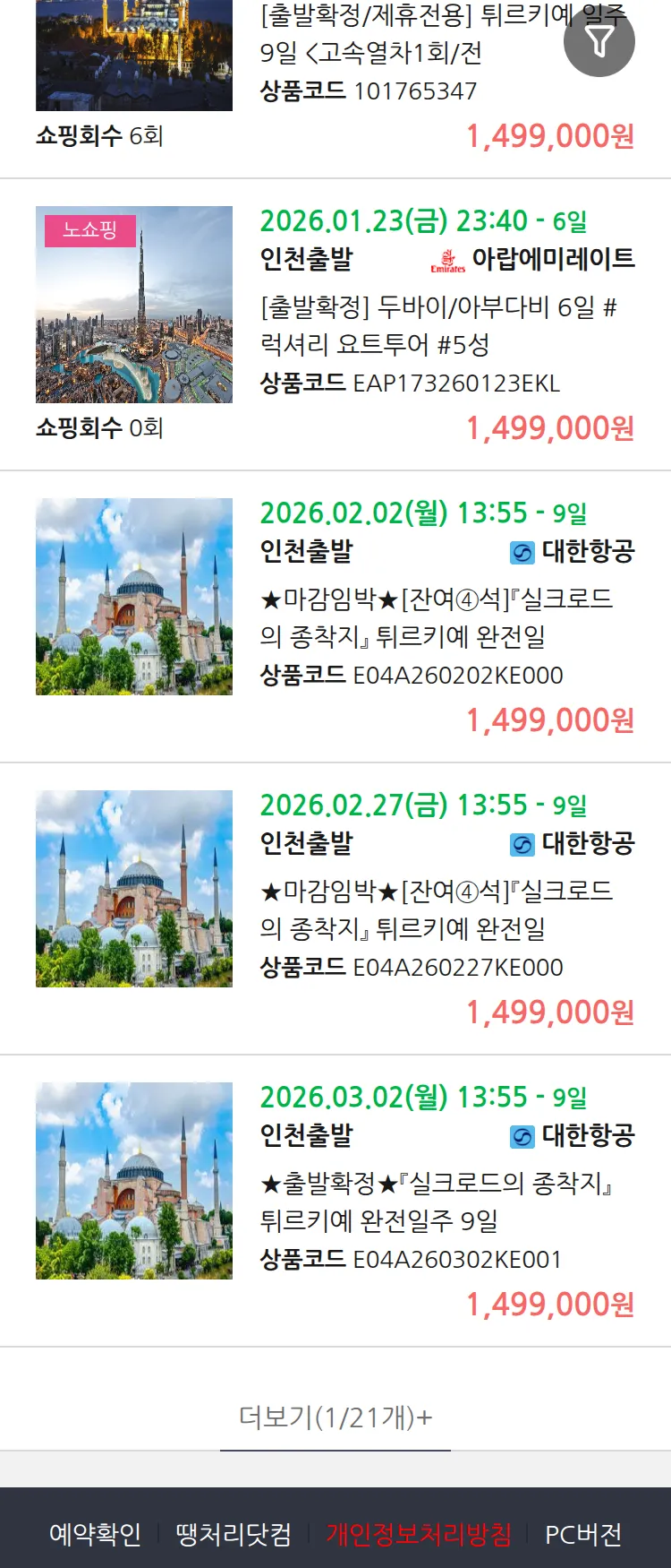 (1월3일(토)) 땡처리 99.9% 확정 패키지