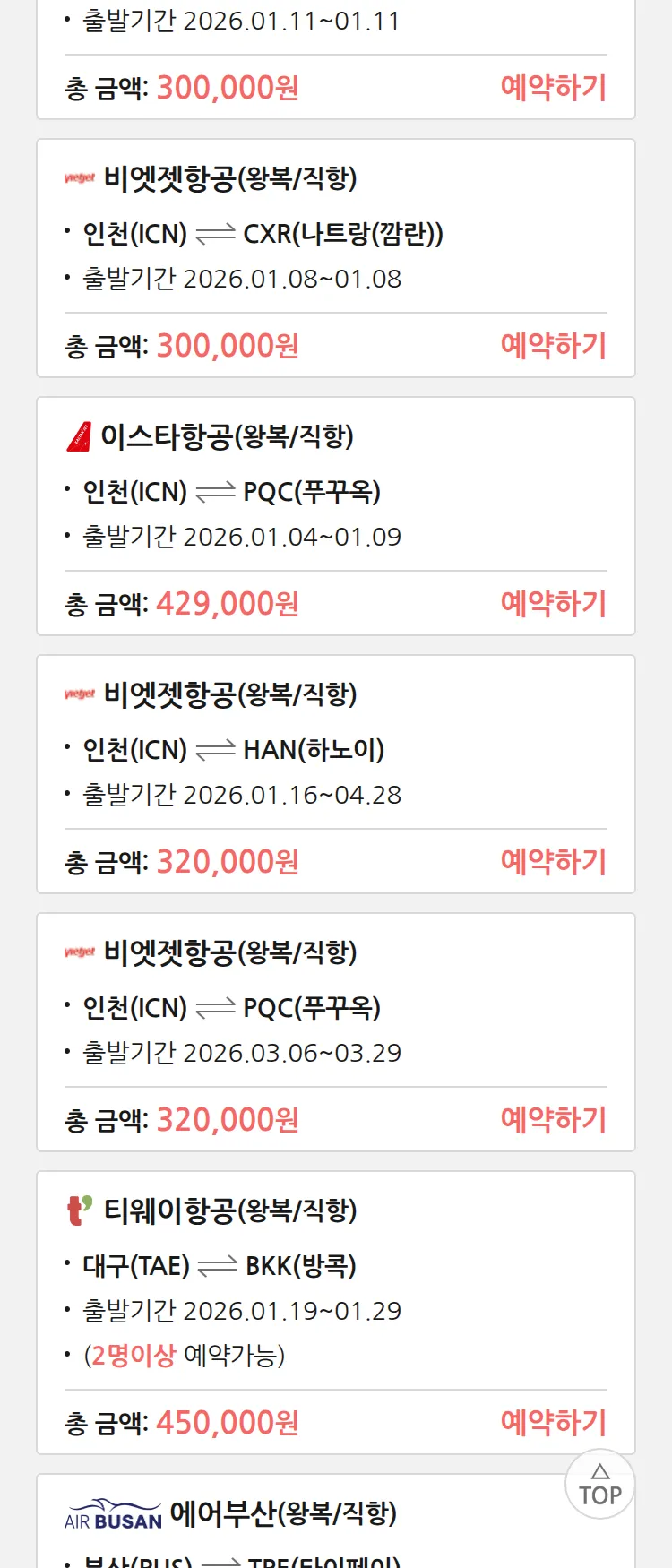(1월1일(목)) 땡처리 특가 항공권