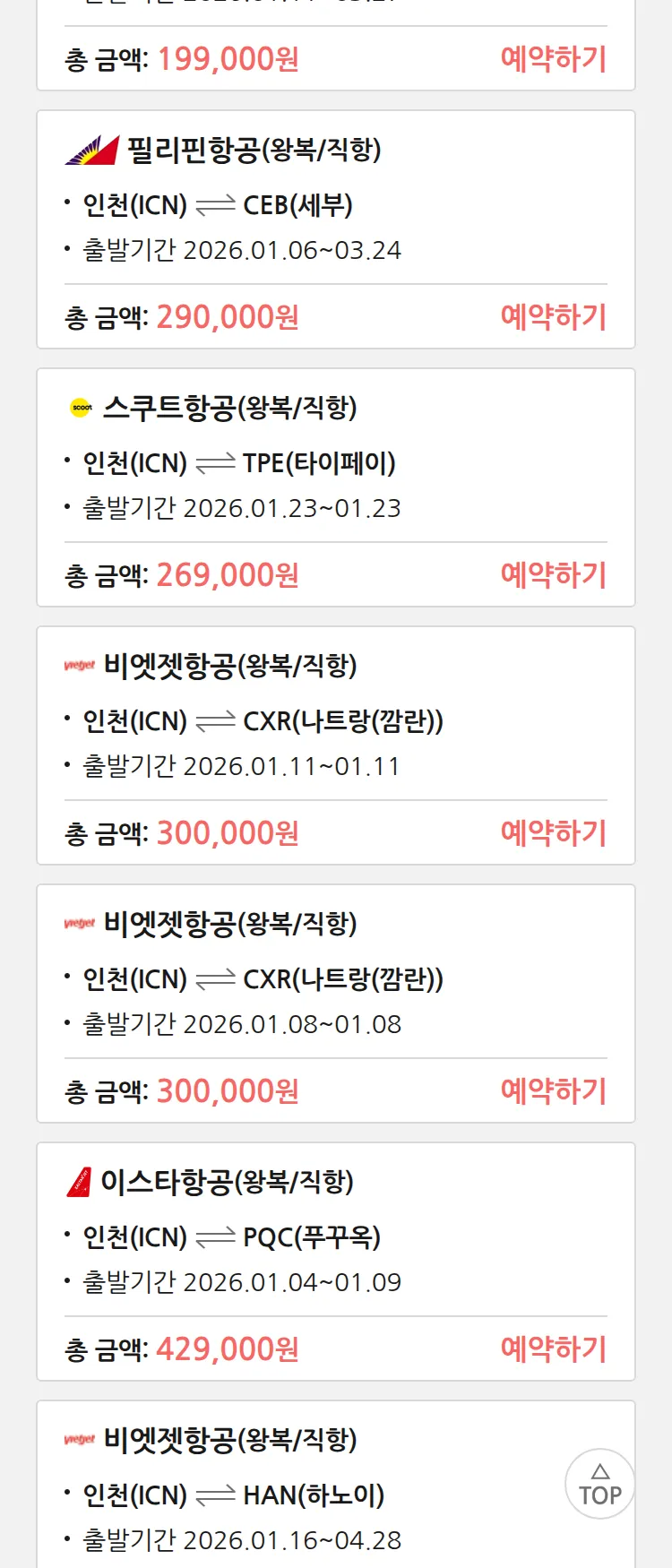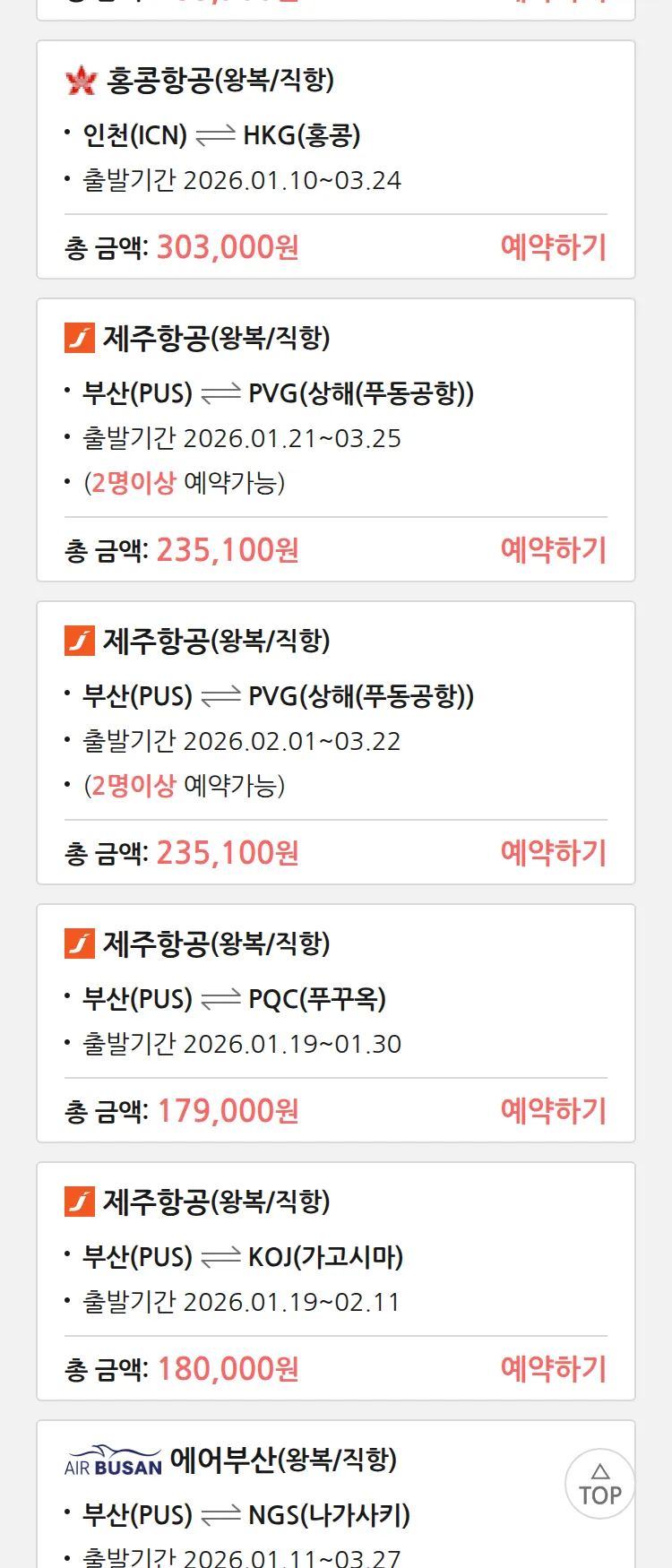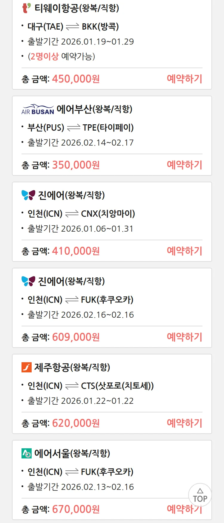 (1월2일(금)) 땡처리 특가 항공권
