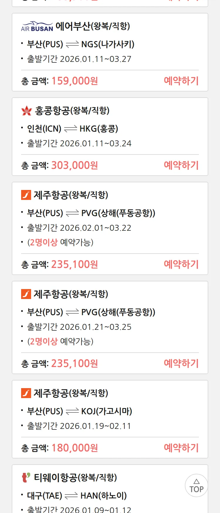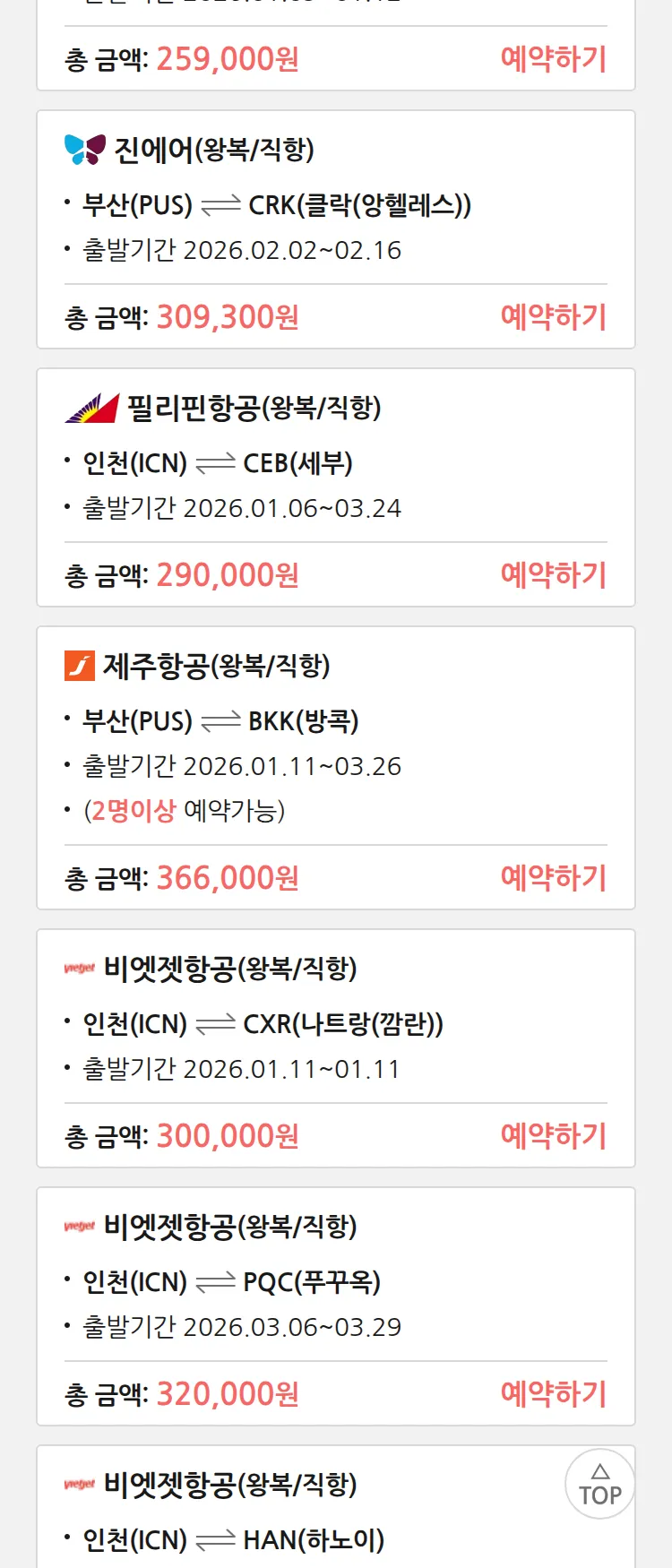 (1월3일(토)) 땡처리 99.9% 확정 패키지