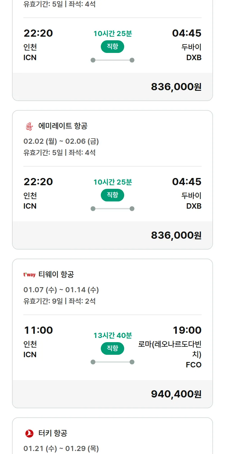 (1월2일(금)) 모두투어 유럽 특가 항공권