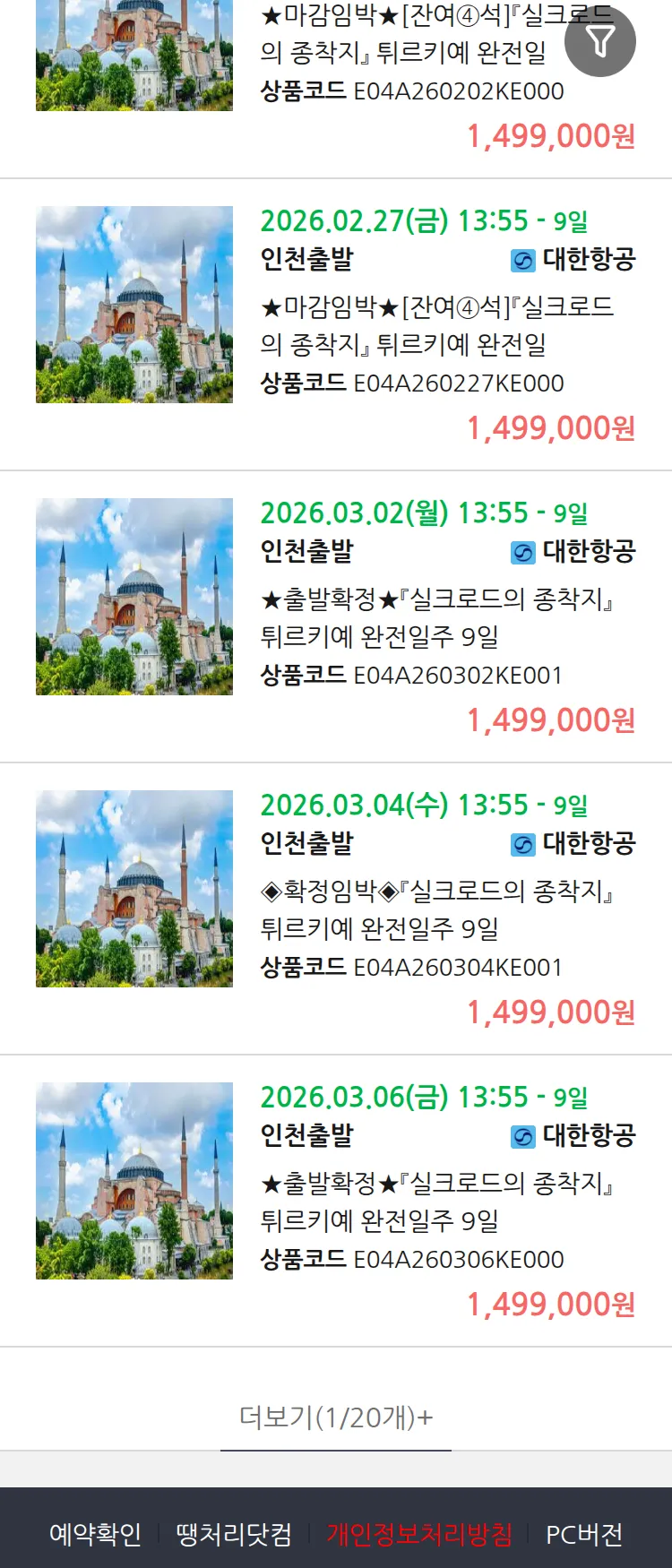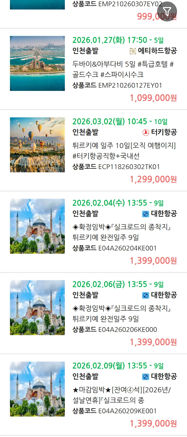 (1월3일(토)) 땡처리 99.9% 확정 패키지