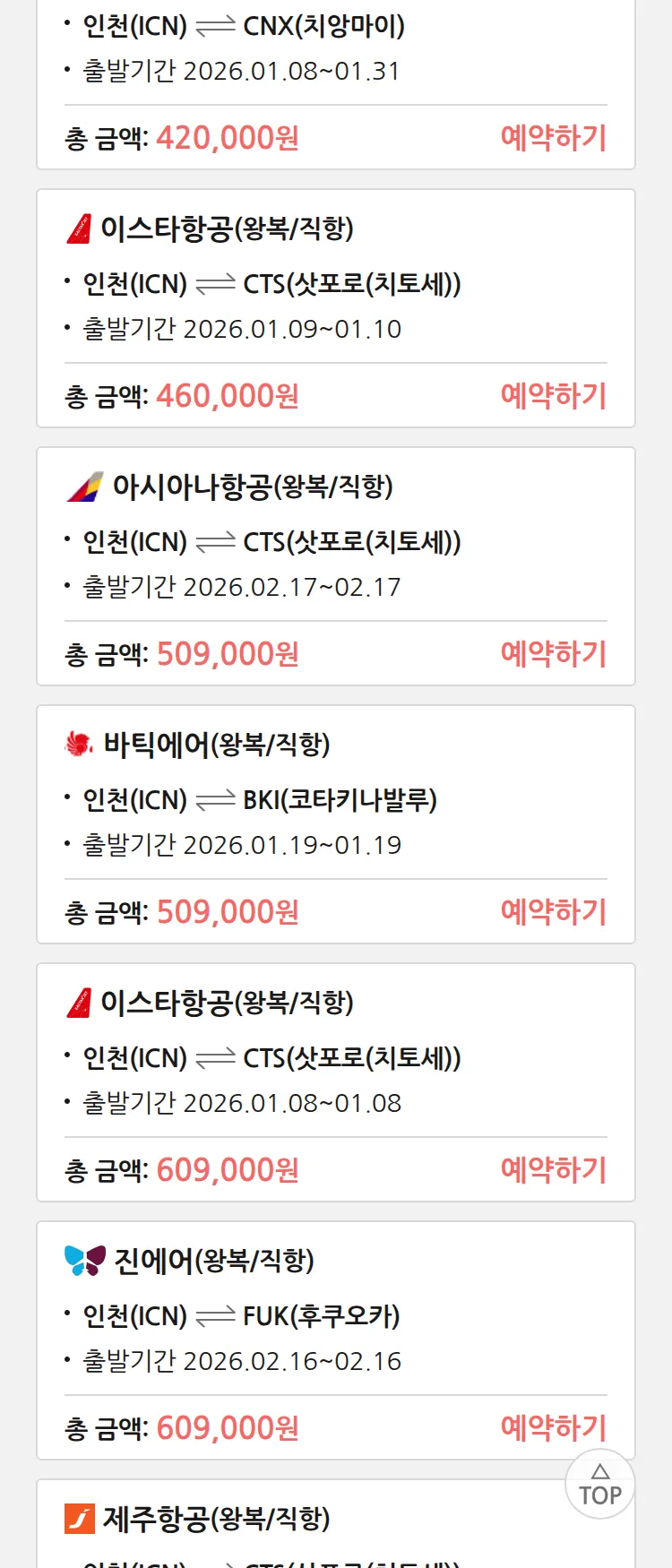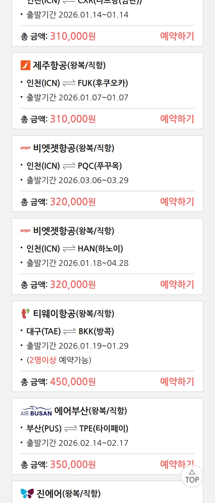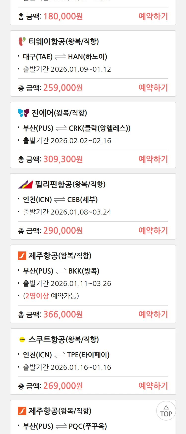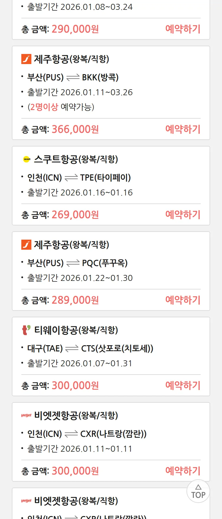 (1월3일(토)) 땡처리 99.9% 확정 패키지