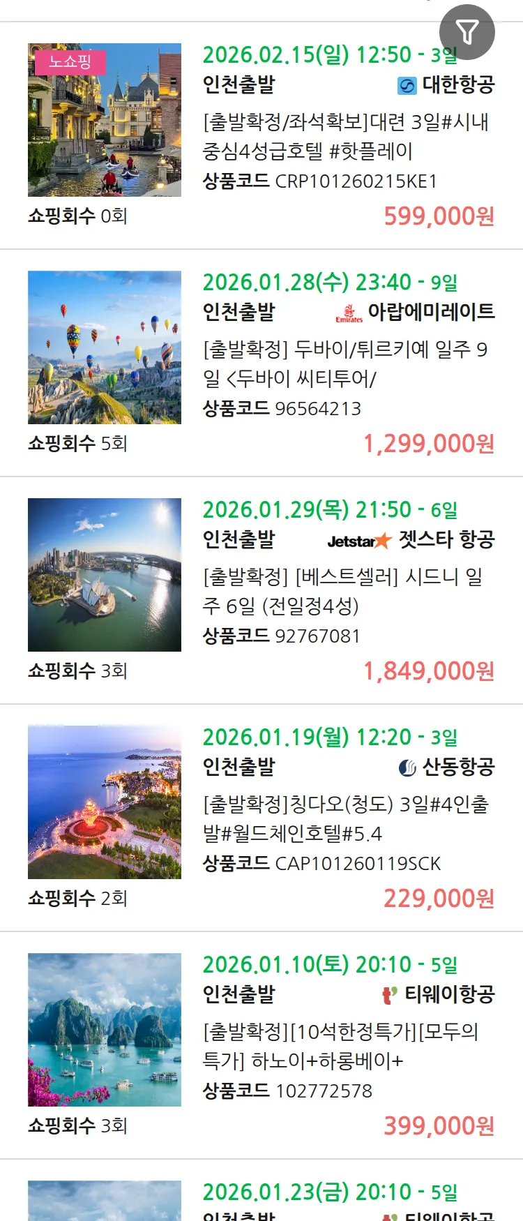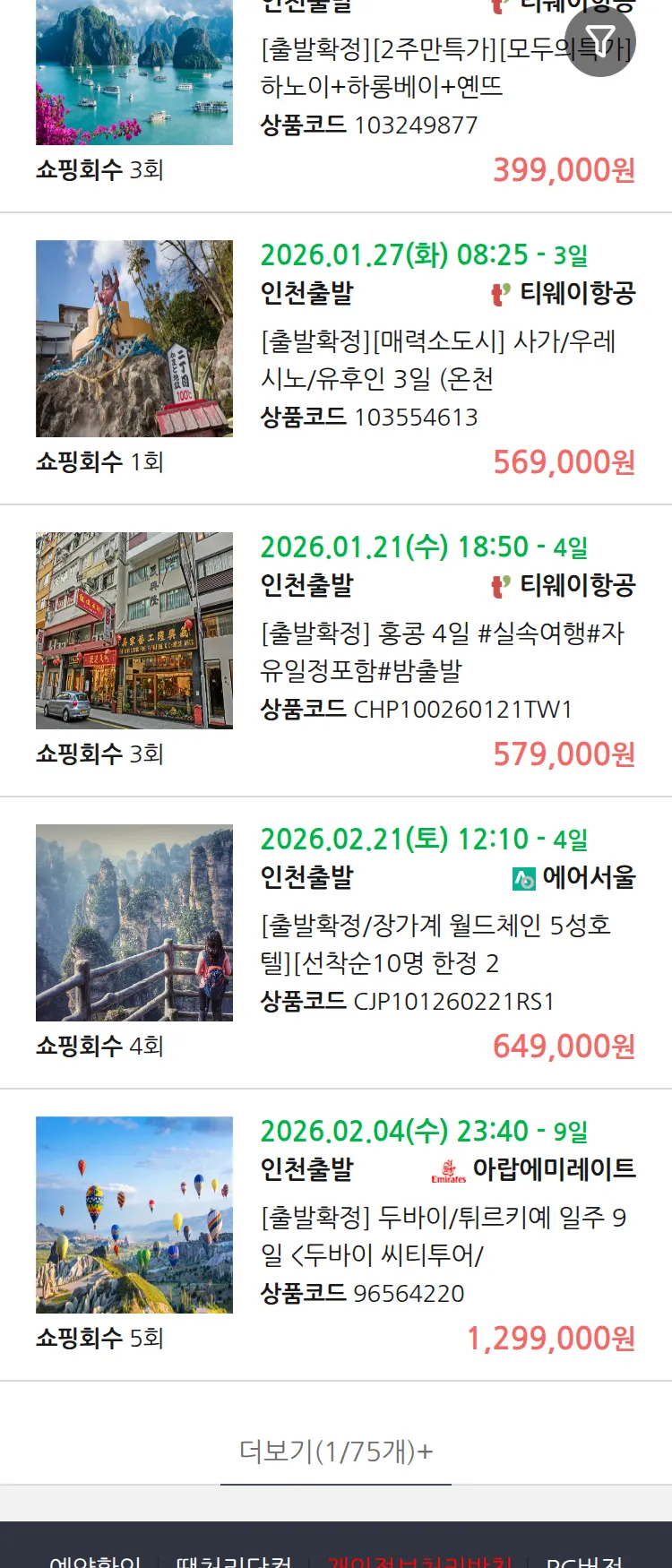 (1월3일(토)) 땡처리 99.9% 확정 패키지