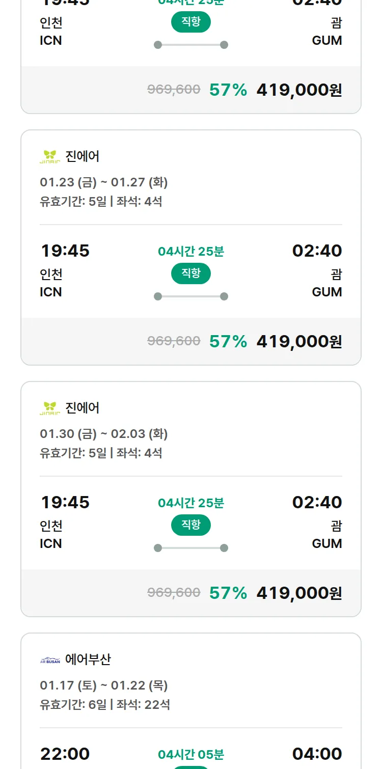 (1월3일(토)) 땡처리 99.9% 확정 패키지