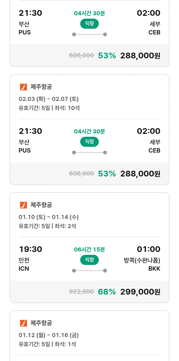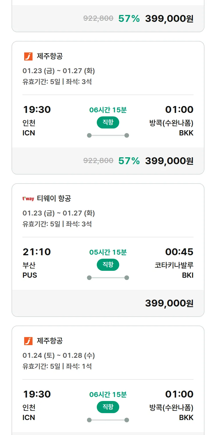 (1월3일(토)) 땡처리 99.9% 확정 패키지