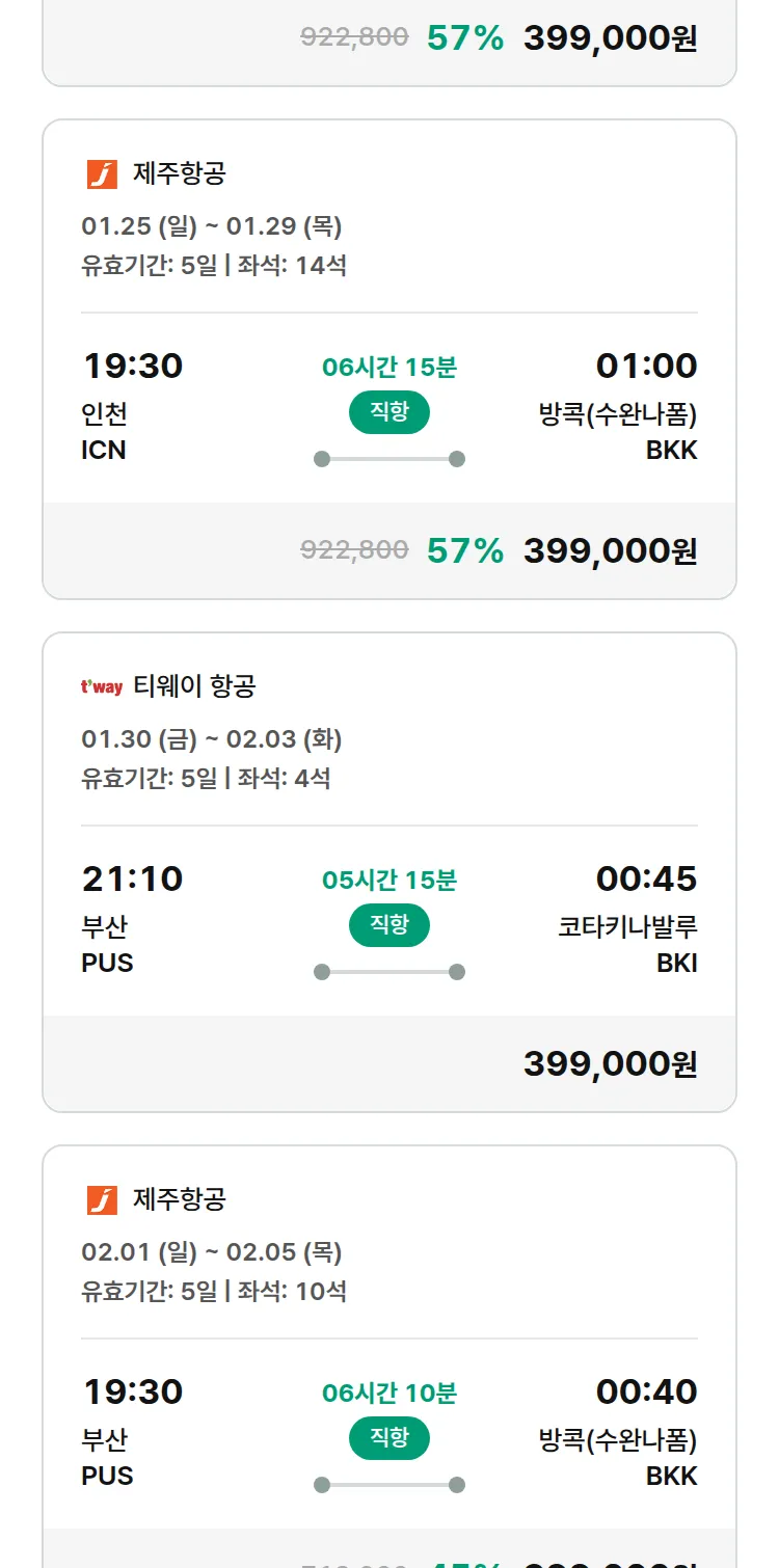 (1월3일(토)) 모두투어 동남아 특가 항공권