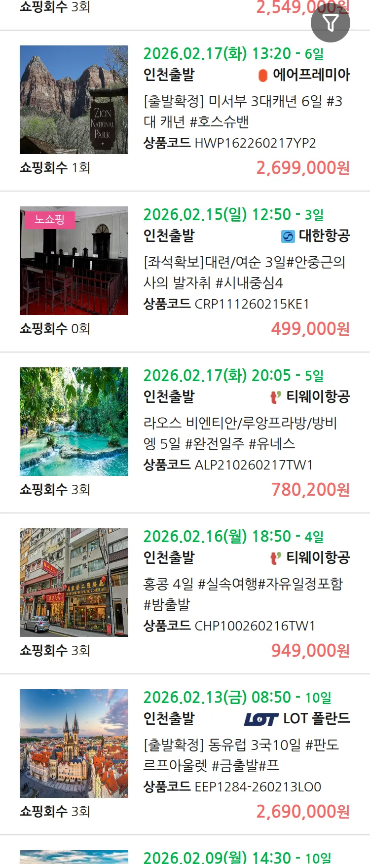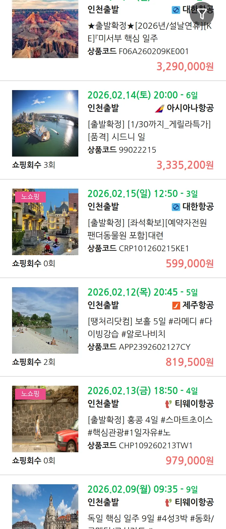 (1월5일(월)) 땡처리 99.9% 확정 패키지