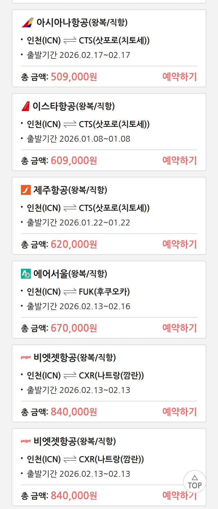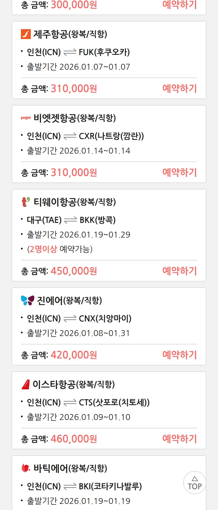 (1월5일(월)) 땡처리 99.9% 확정 패키지