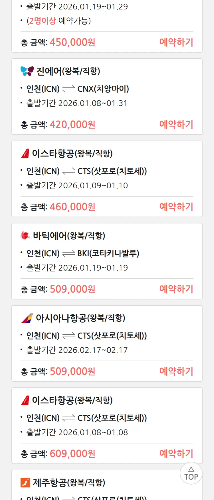 (1월4일(일)) 땡처리 99.9% 확정 패키지