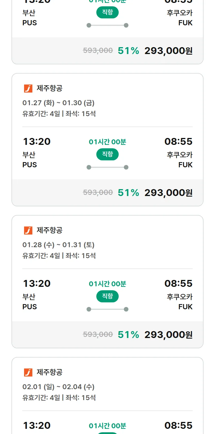 (1월4일(일)) 땡처리 99.9% 확정 패키지