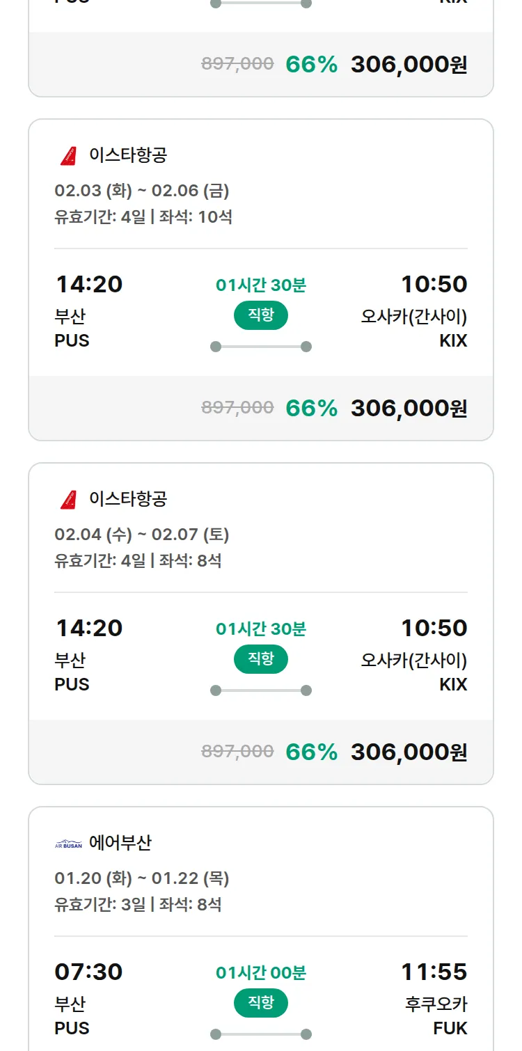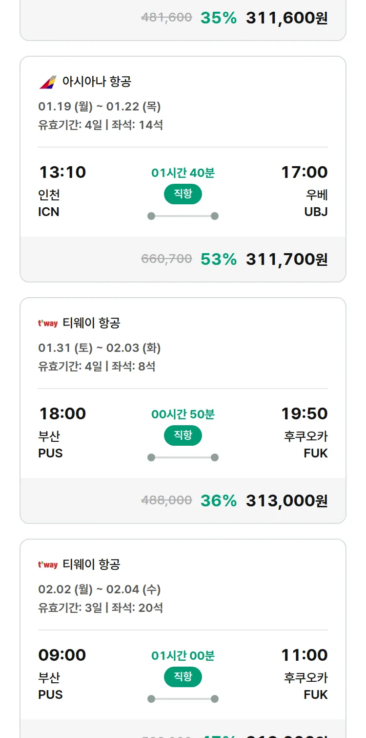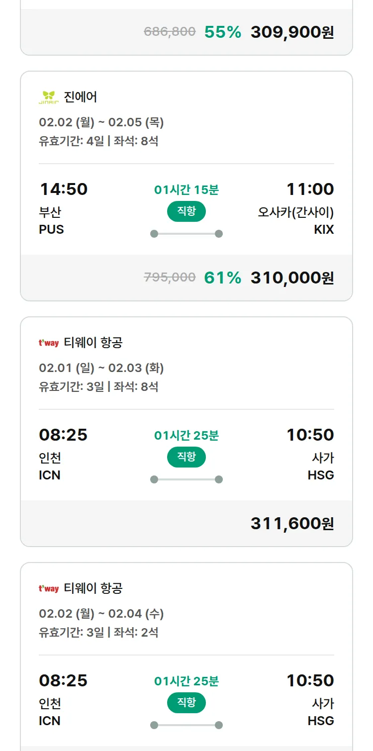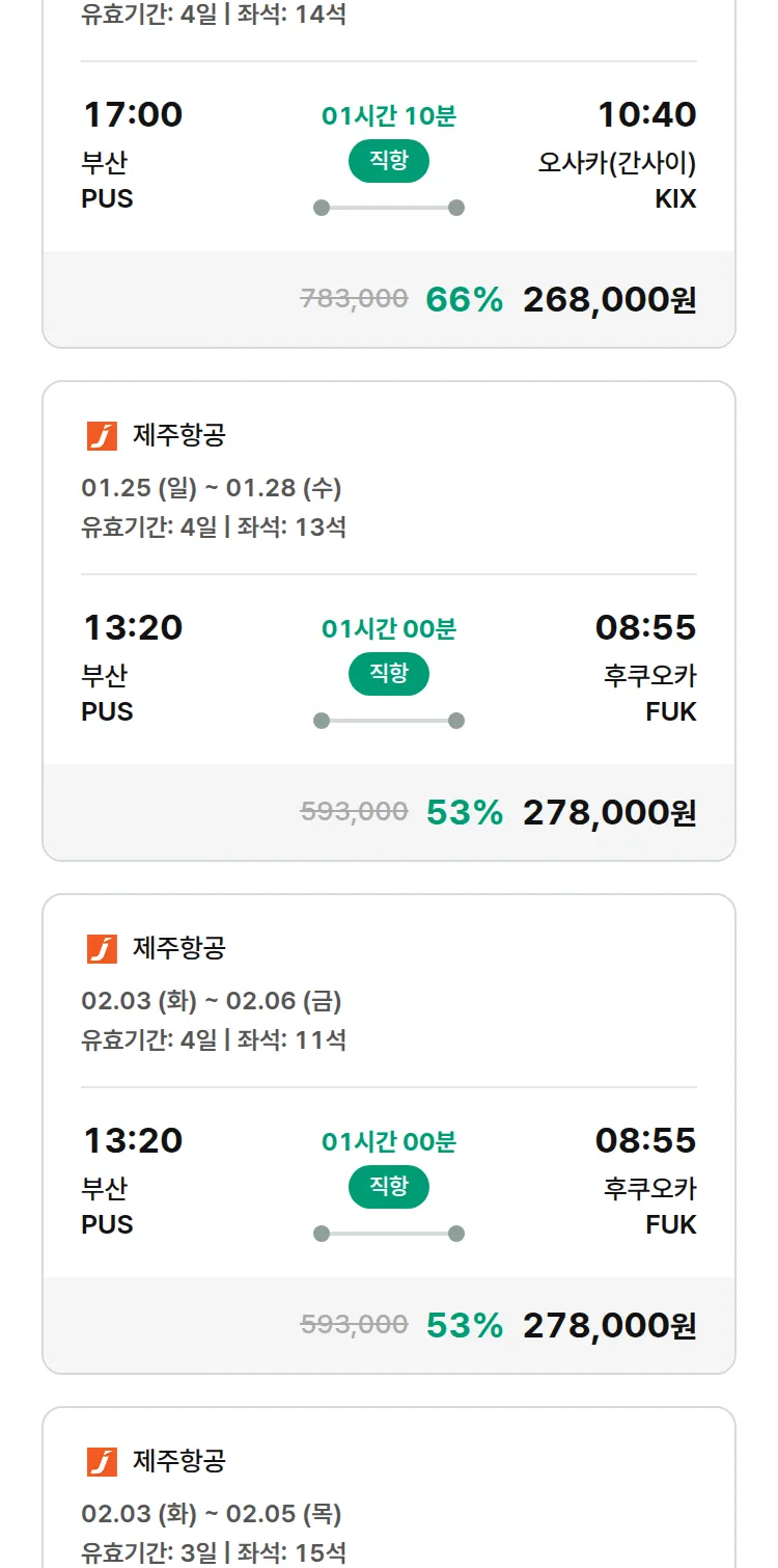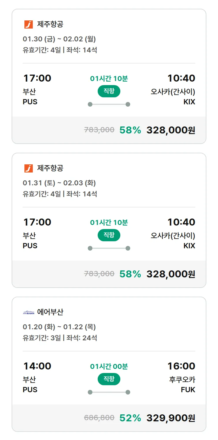 (1월4일(일)) 모두투어 일본 특가 항공권