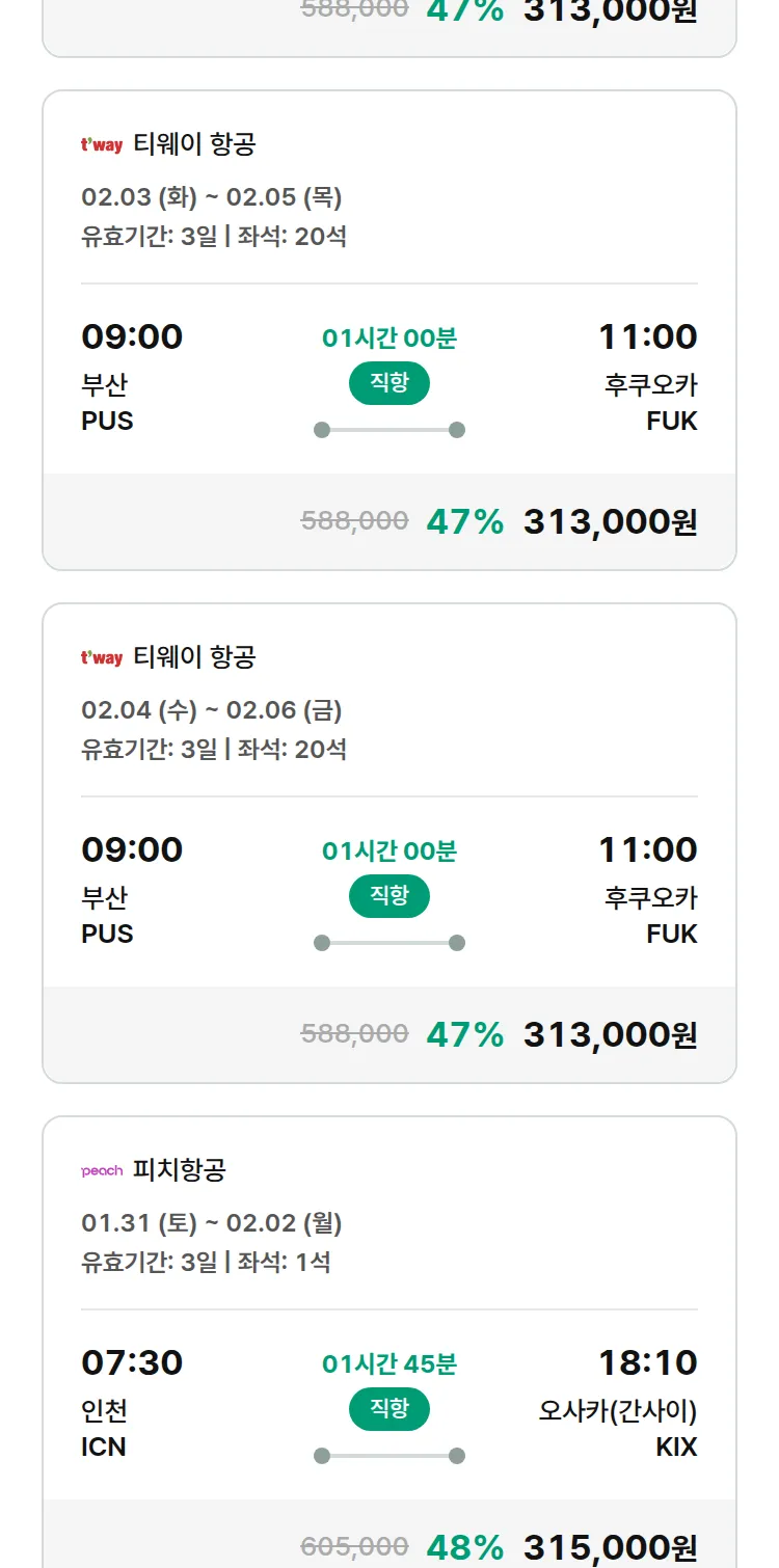 (1월5일(월)) 모두투어 일본 특가 항공권