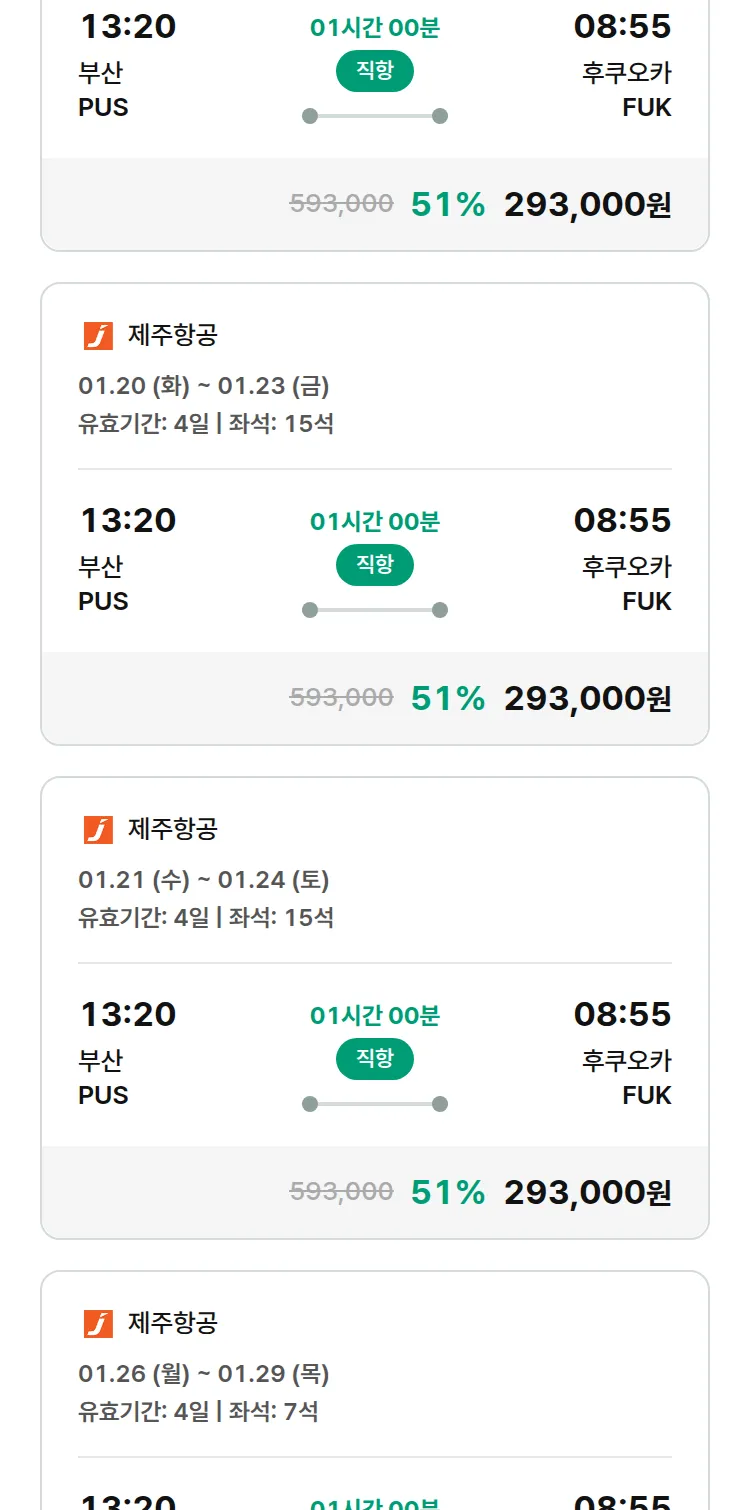 (1월5일(월)) 땡처리 99.9% 확정 패키지