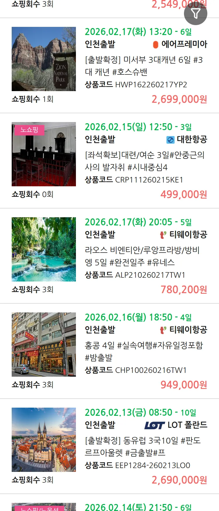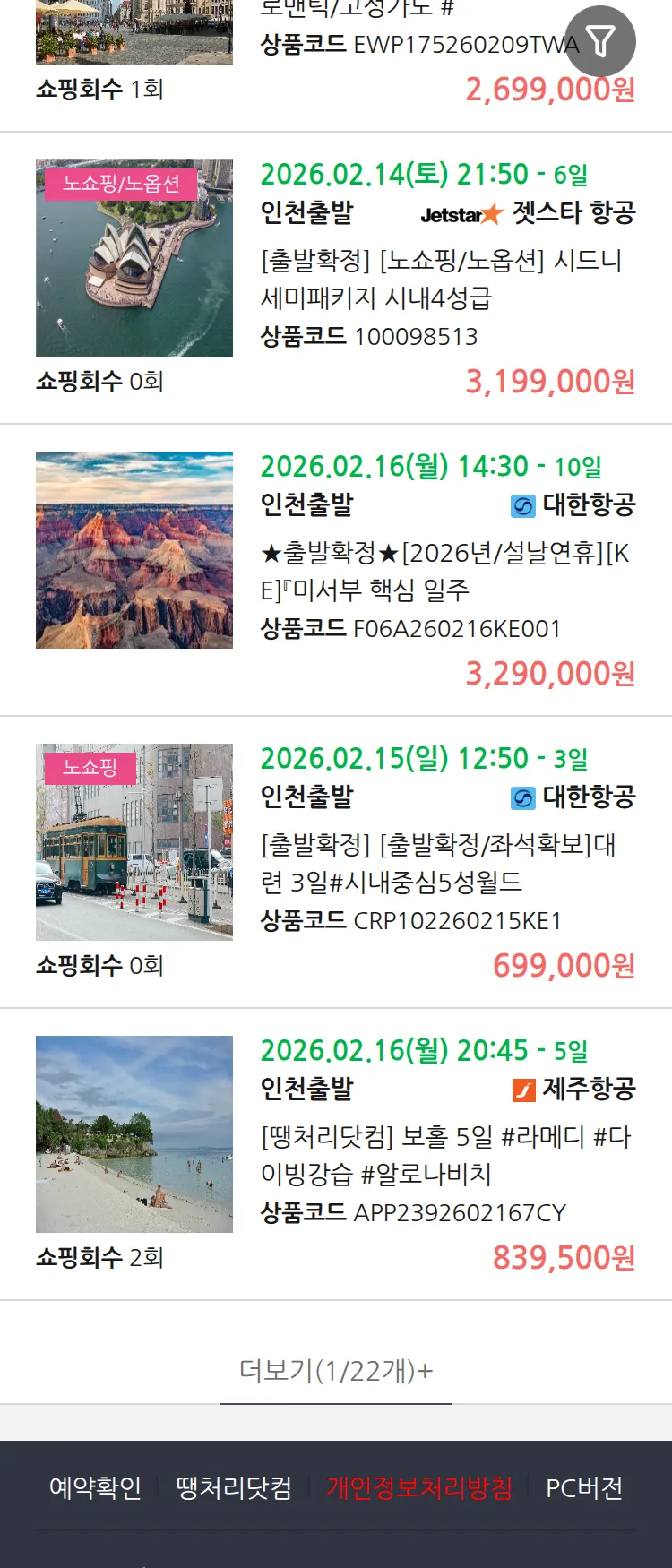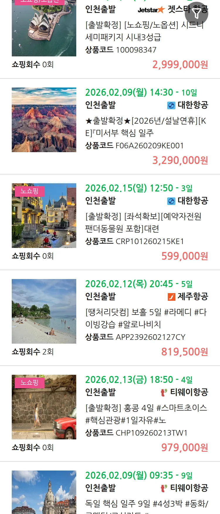 (1월6일(화)) 땡처리 99.9% 확정 패키지