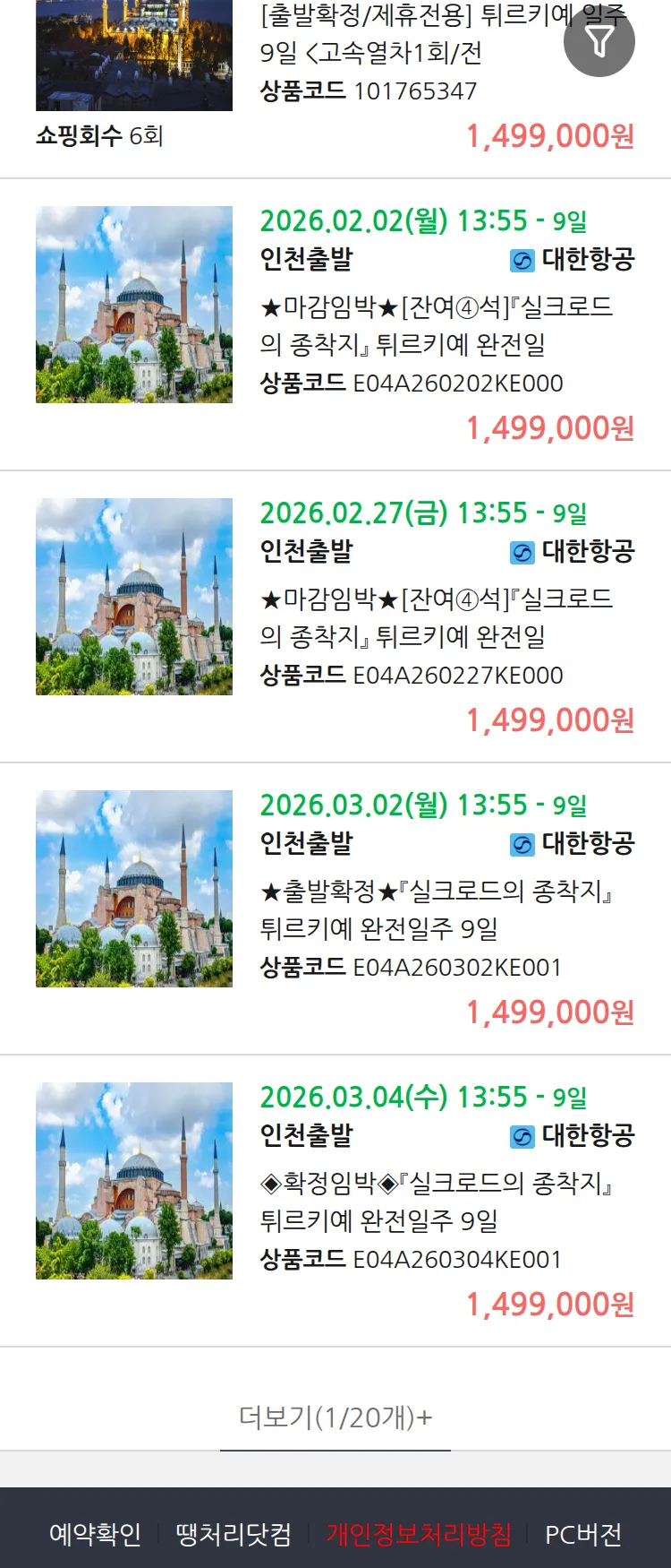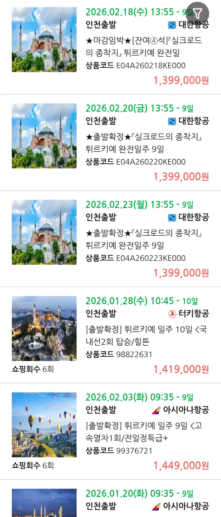 (1월6일(화)) 땡처리 99.9% 확정 패키지