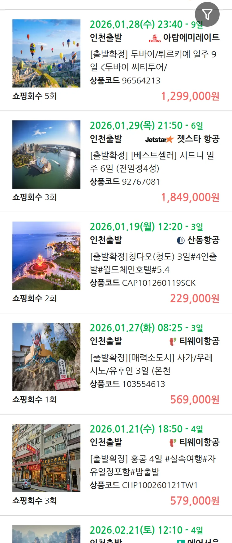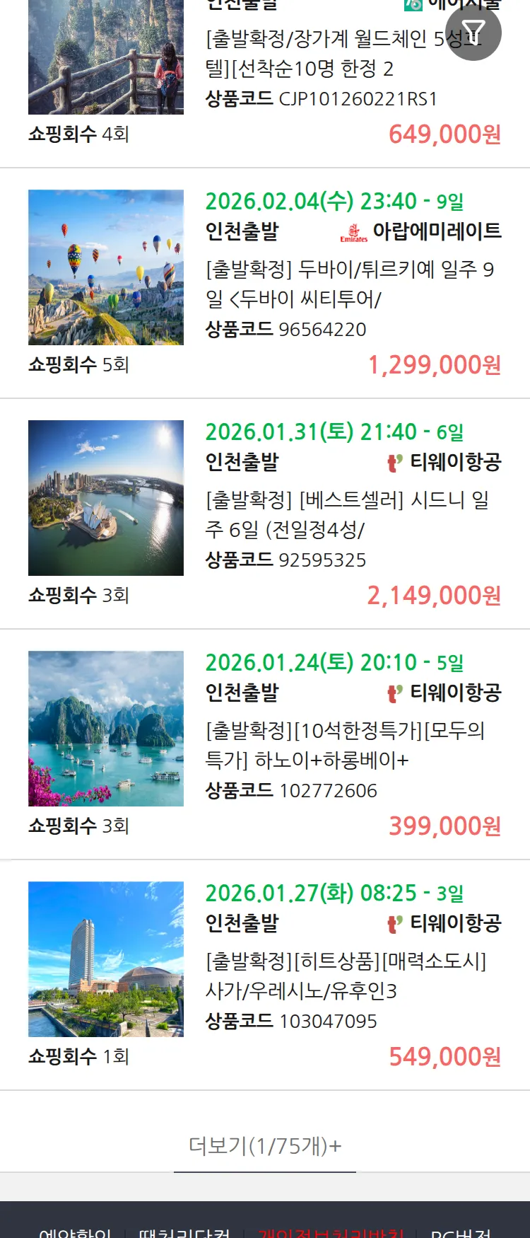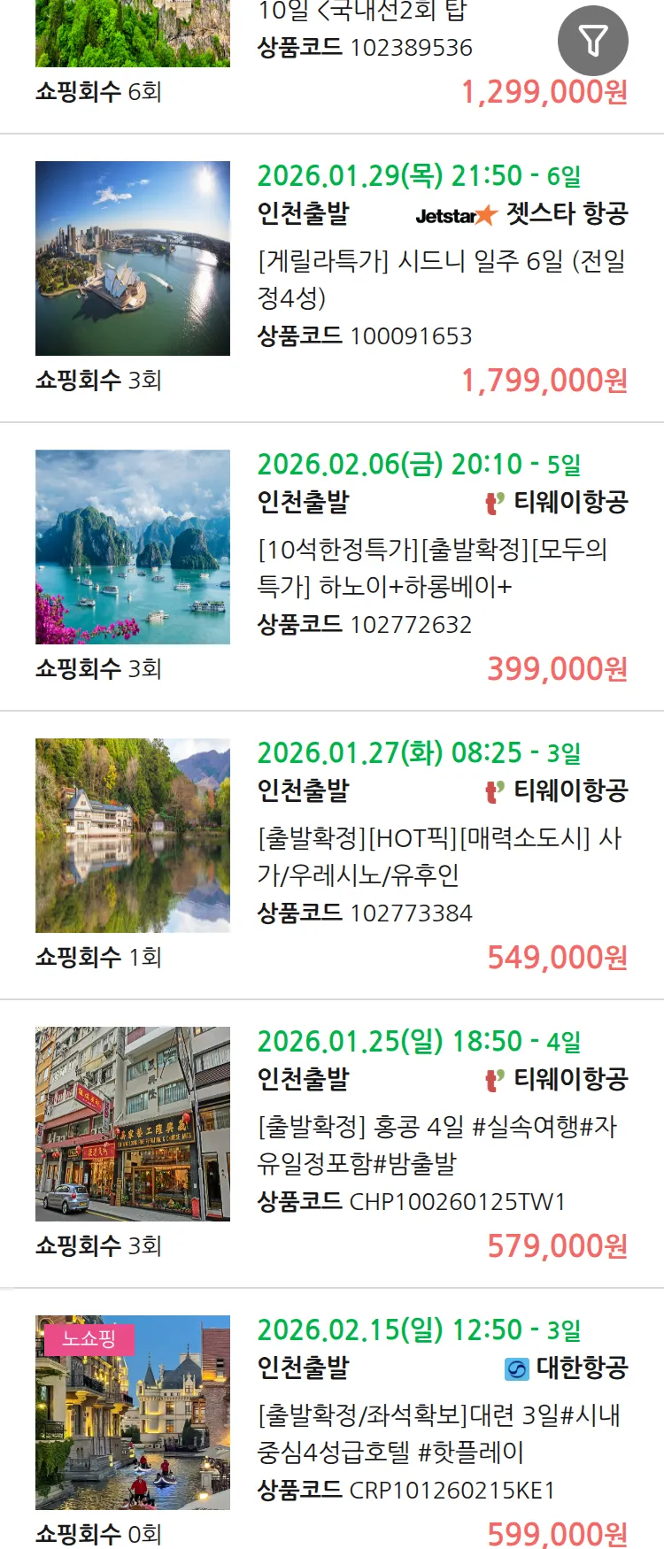 (1월5일(월)) 땡처리 99.9% 확정 패키지