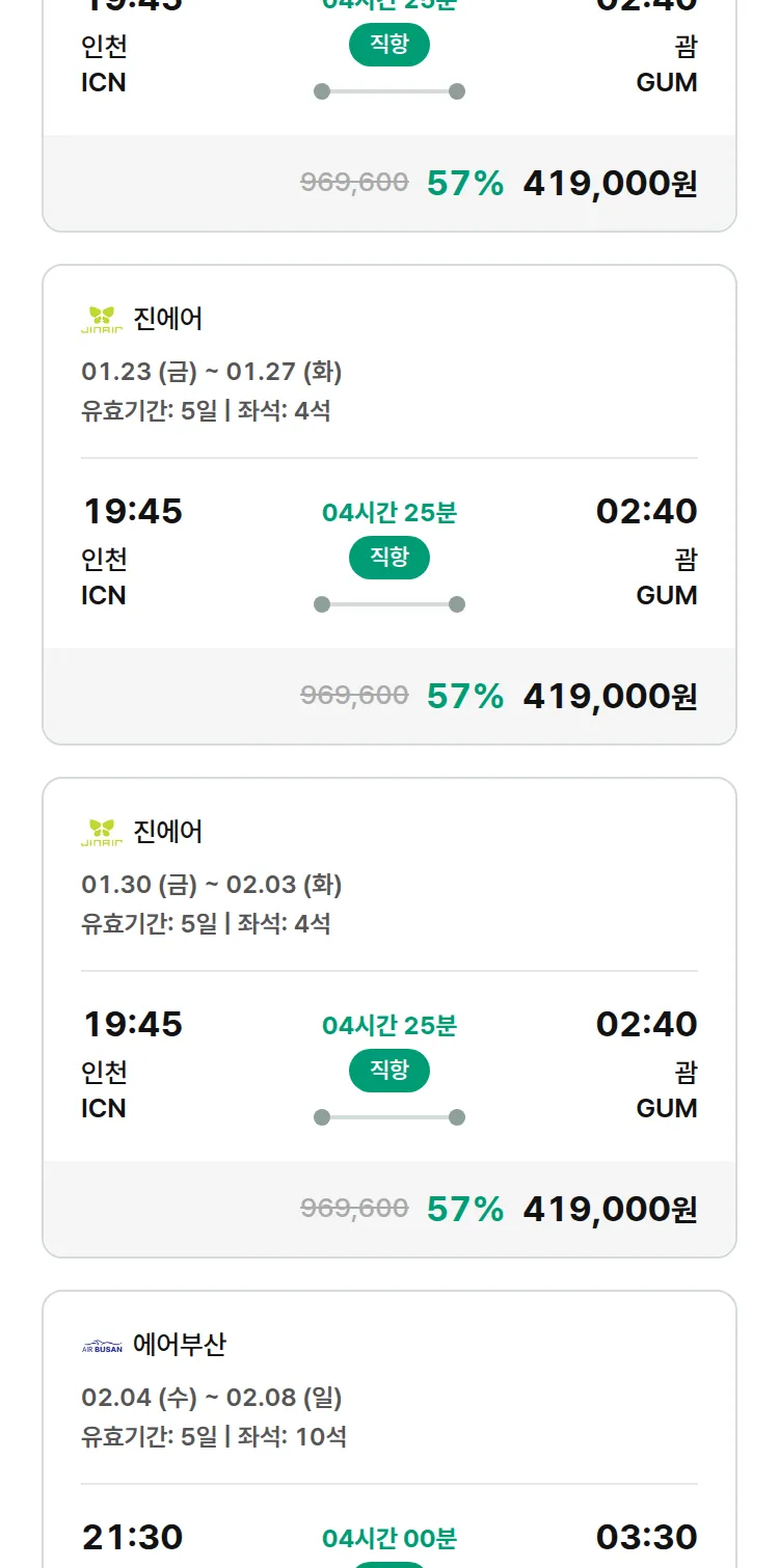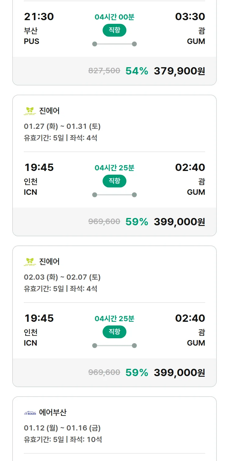 (1월5일(월)) 땡처리 특가 항공권