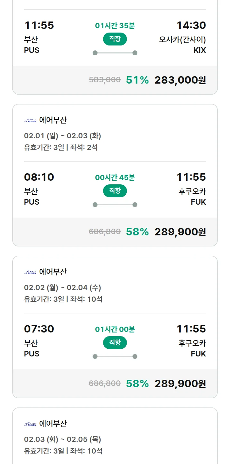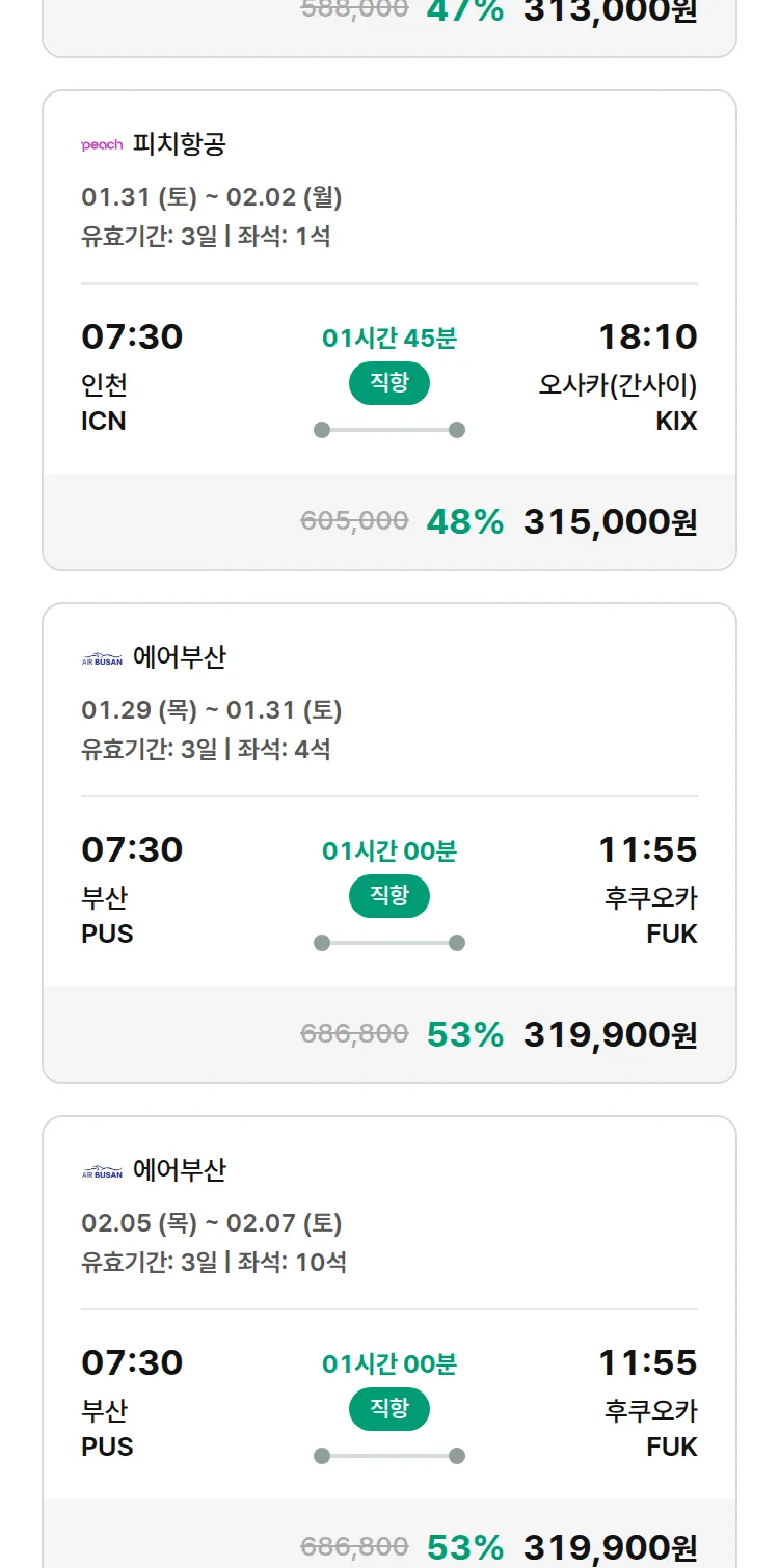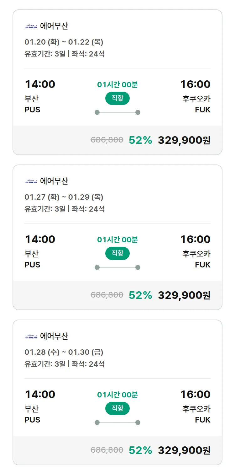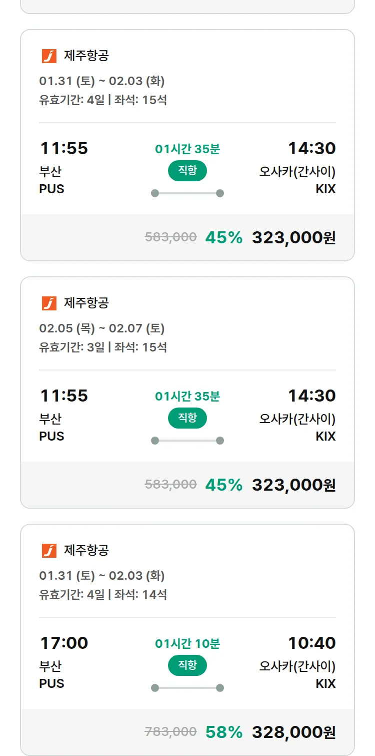 (1월5일(월)) 모두투어 일본 특가 항공권