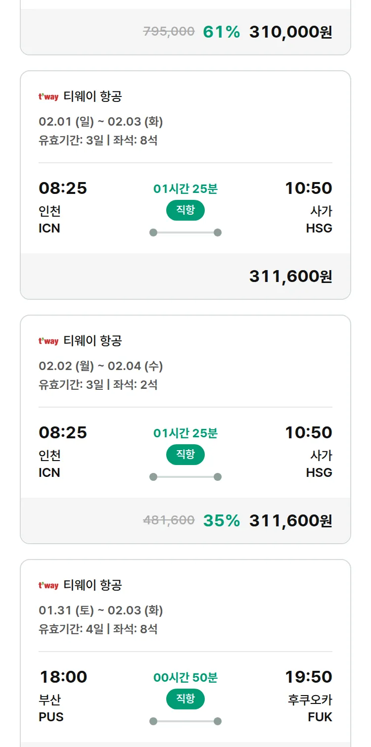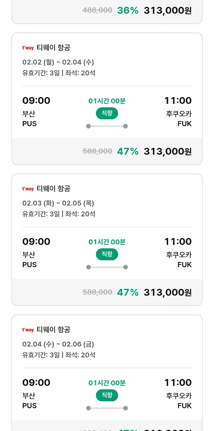 (1월5일(월)) 땡처리 99.9% 확정 패키지