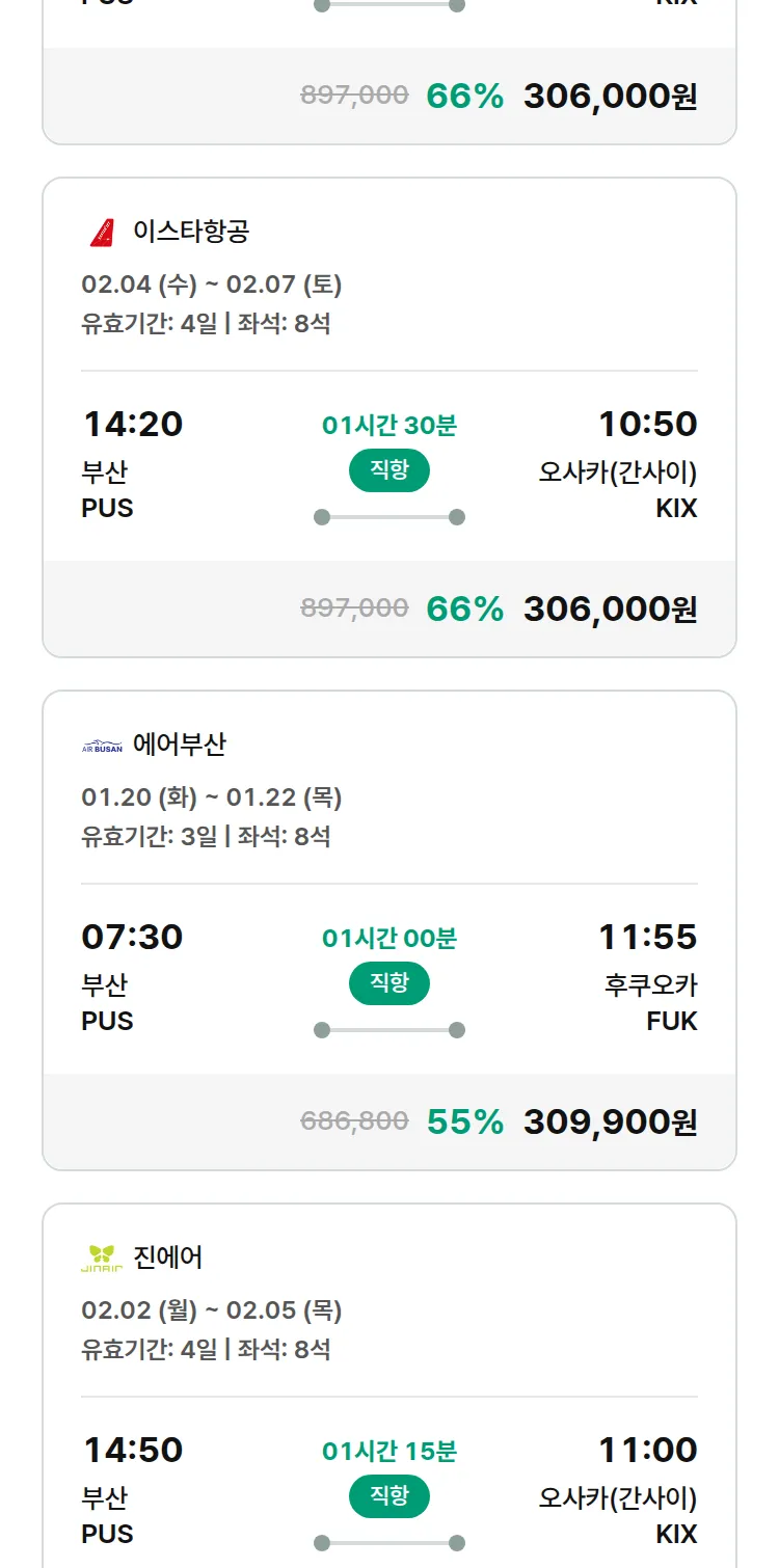 (1월4일(일)) 모두투어 일본 특가 항공권