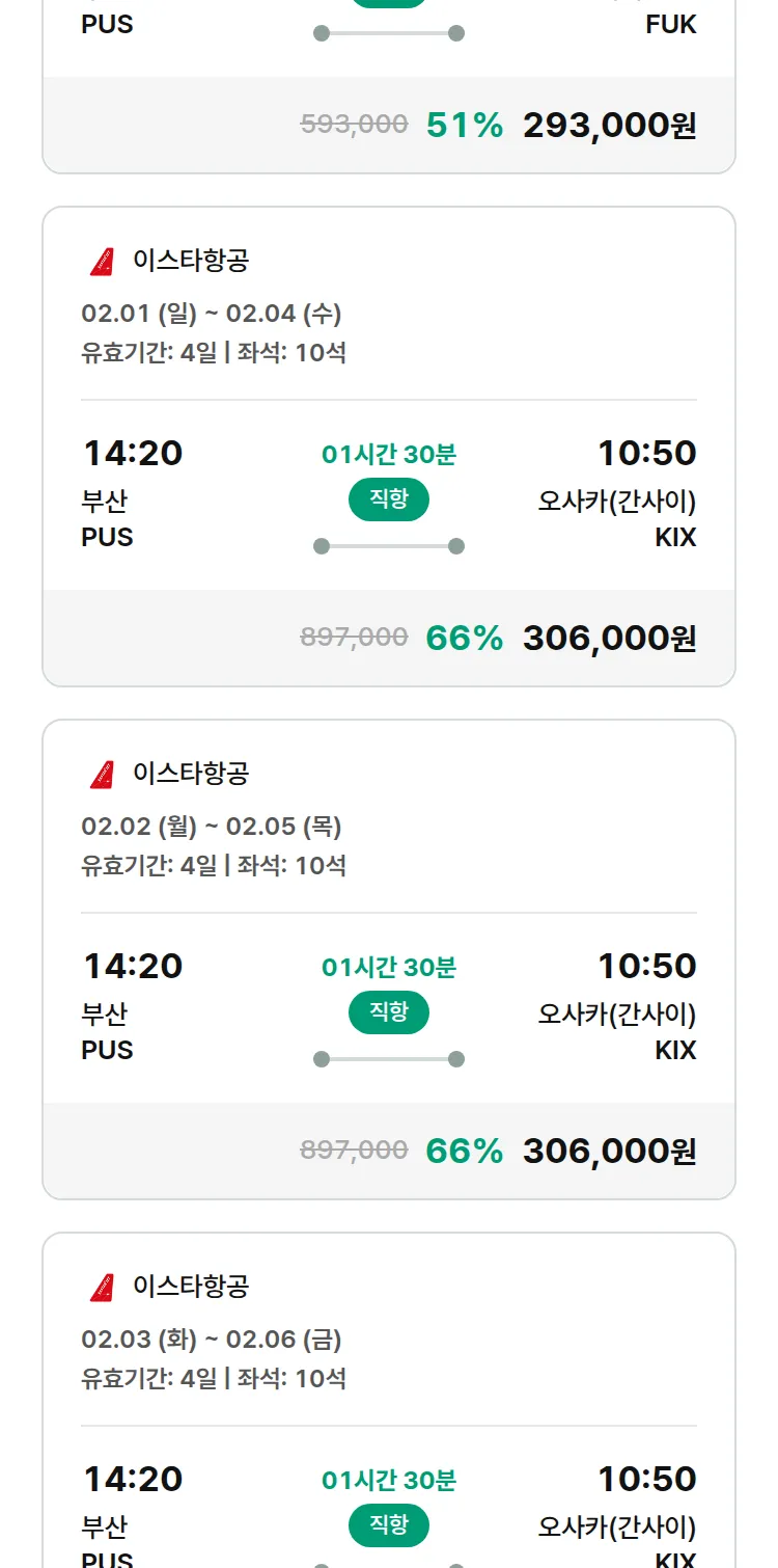 (1월4일(일)) 땡처리 99.9% 확정 패키지