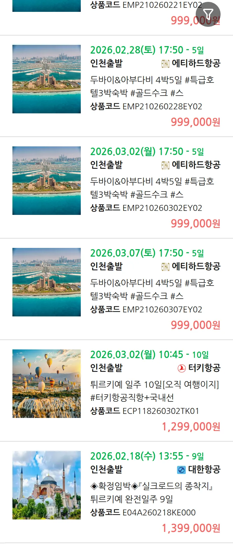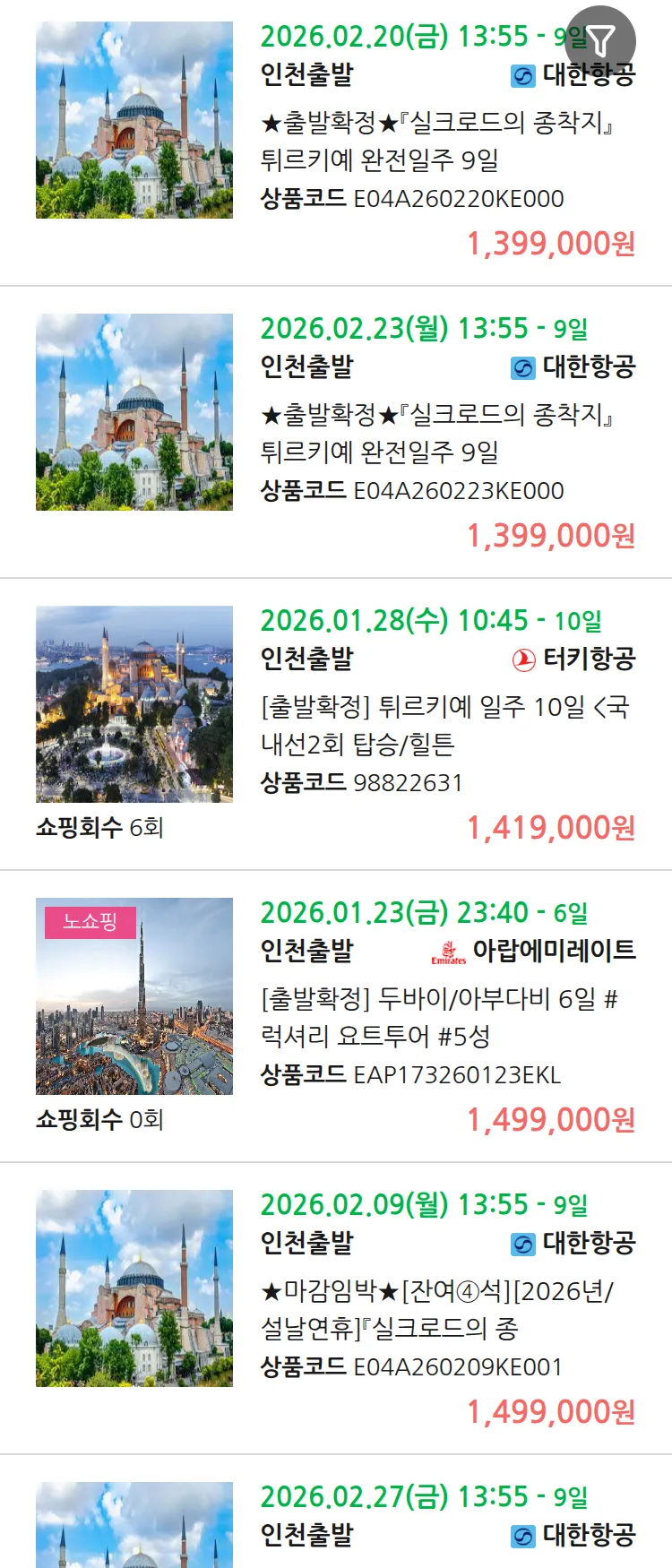 (1월6일(화)) 땡처리 99.9% 확정 패키지