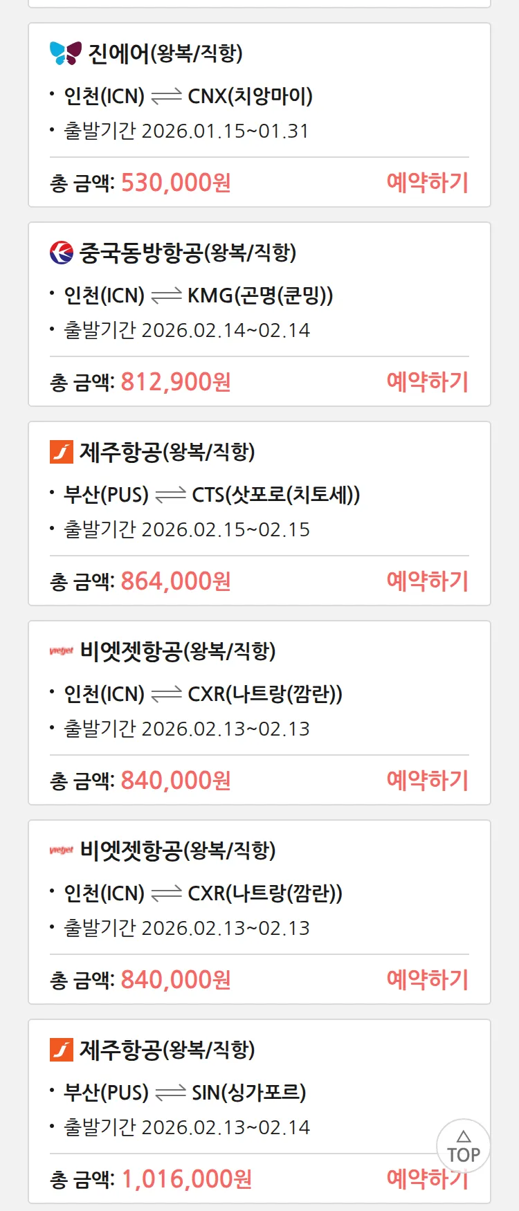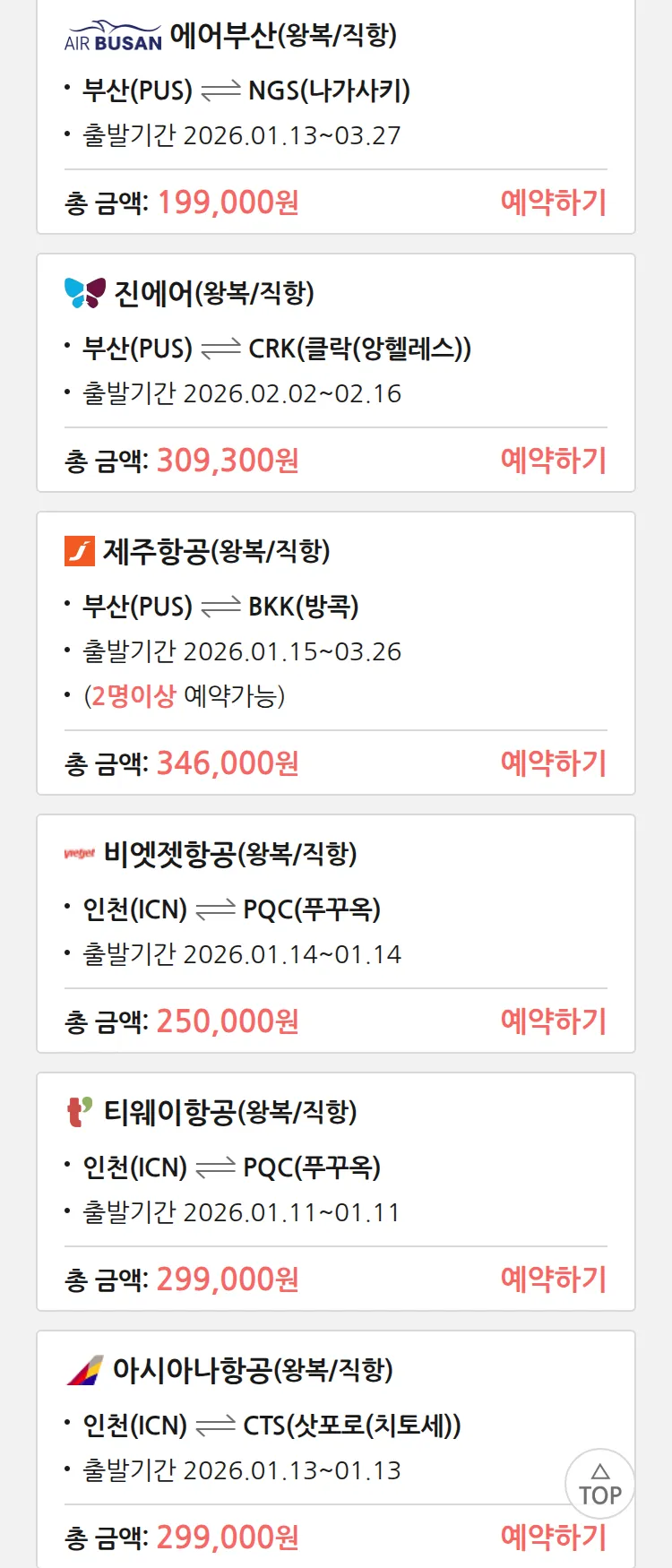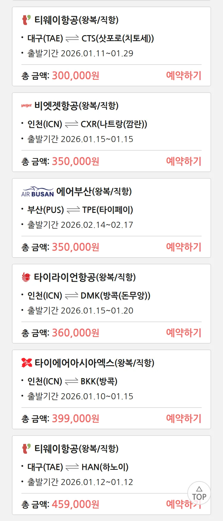 (1월6일(화)) 땡처리 99.9% 확정 패키지