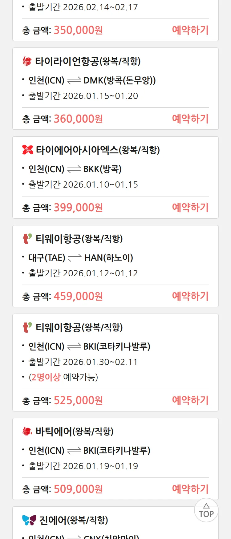 (1월6일(화)) 모두투어 동남아 특가 항공권
