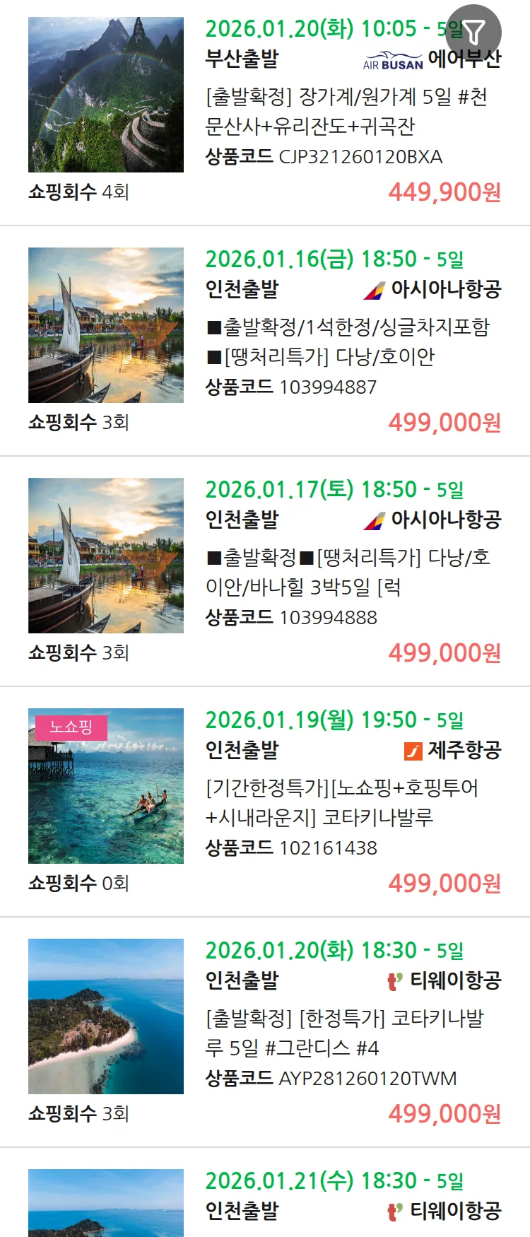 (1월7일(수)) 땡처리 99.9% 확정 패키지
