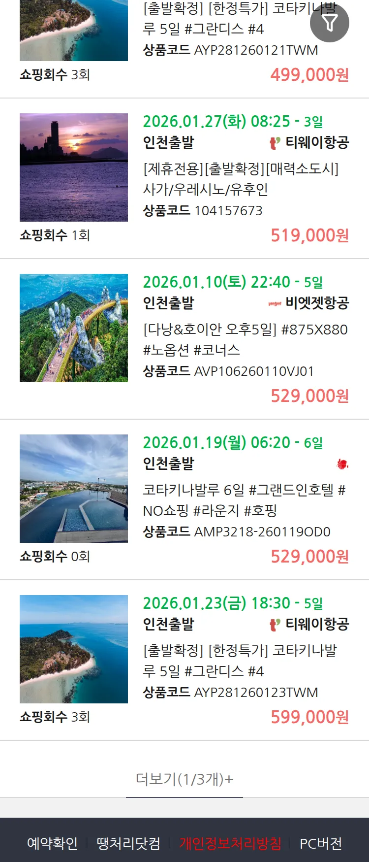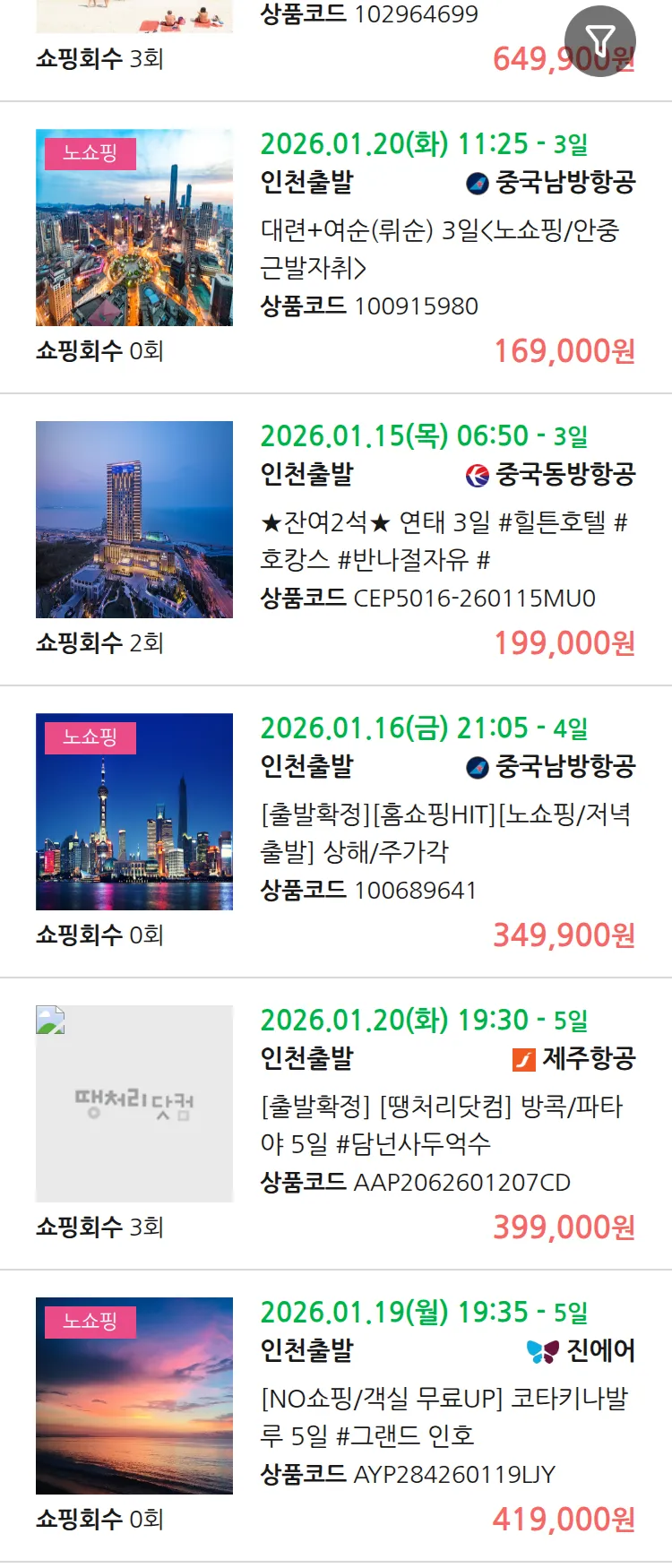 (1월8일(목)) 땡처리 99.9% 확정 패키지