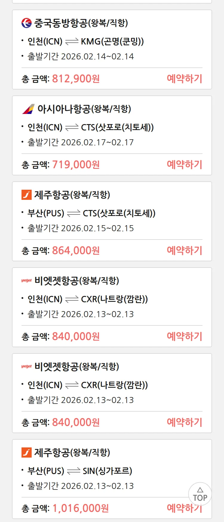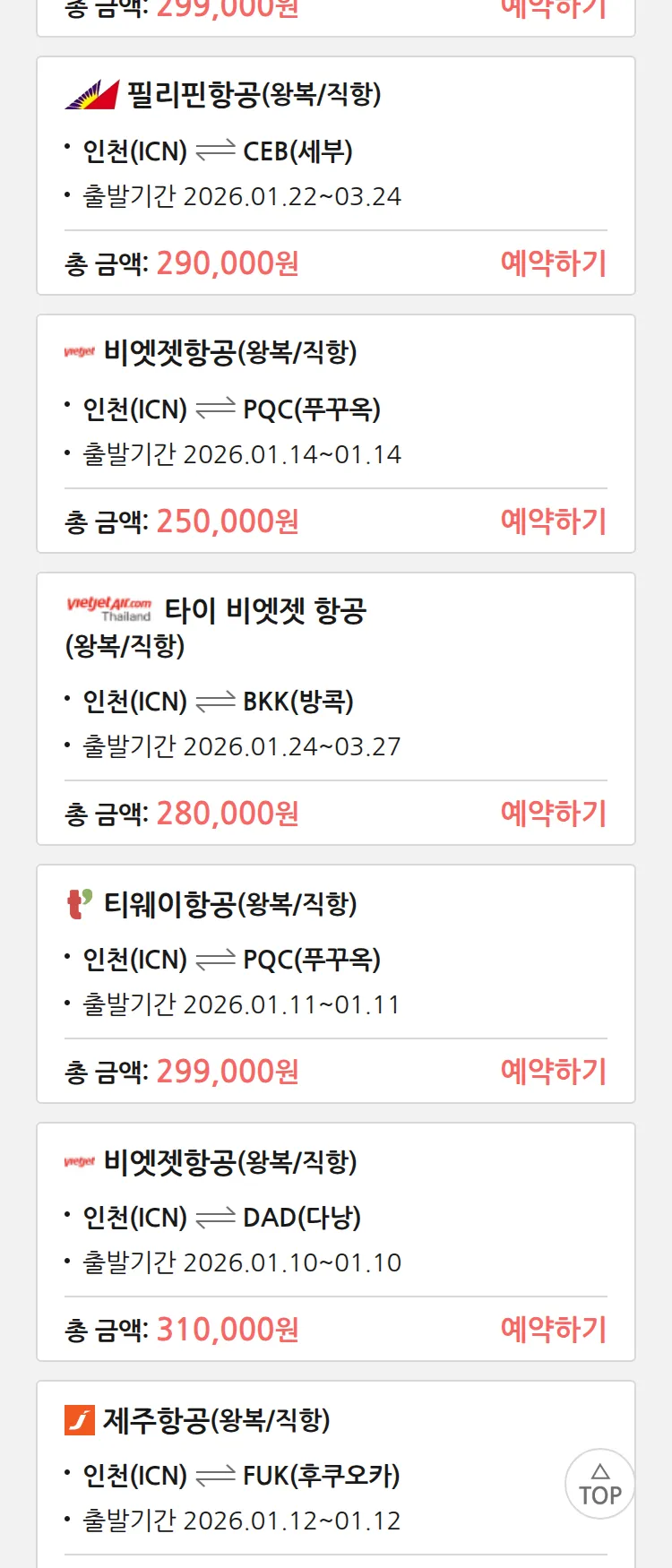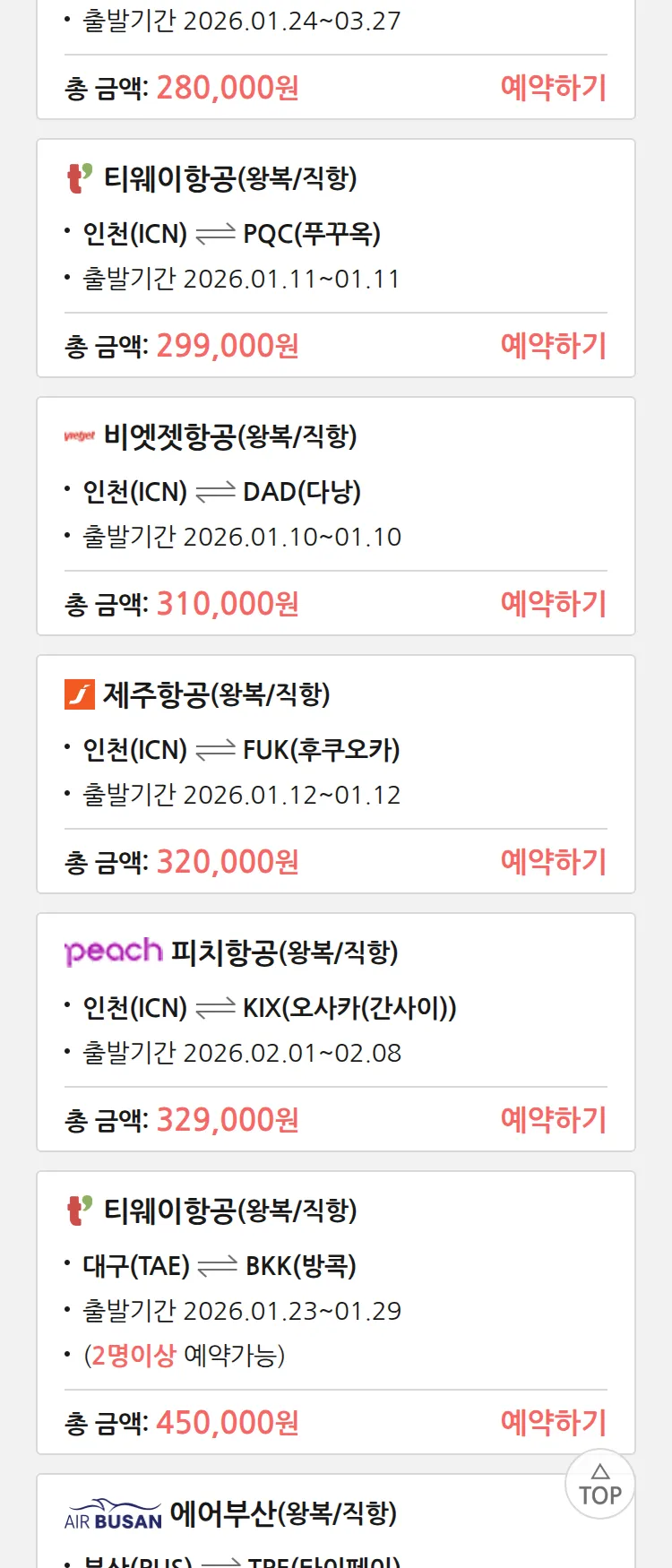 (1월7일(수)) 땡처리 99.9% 확정 패키지
