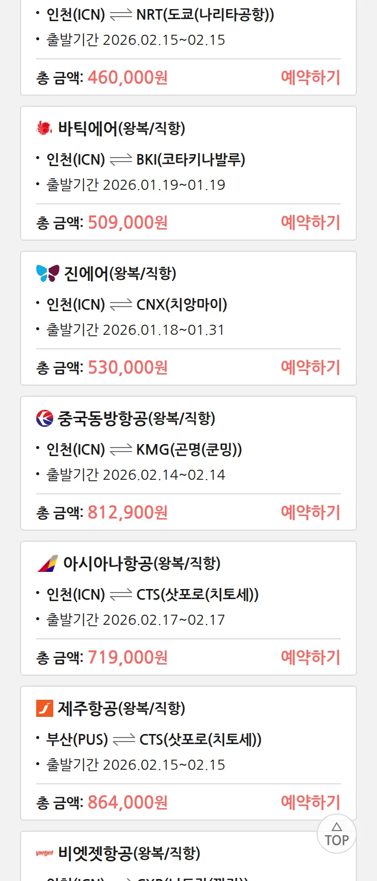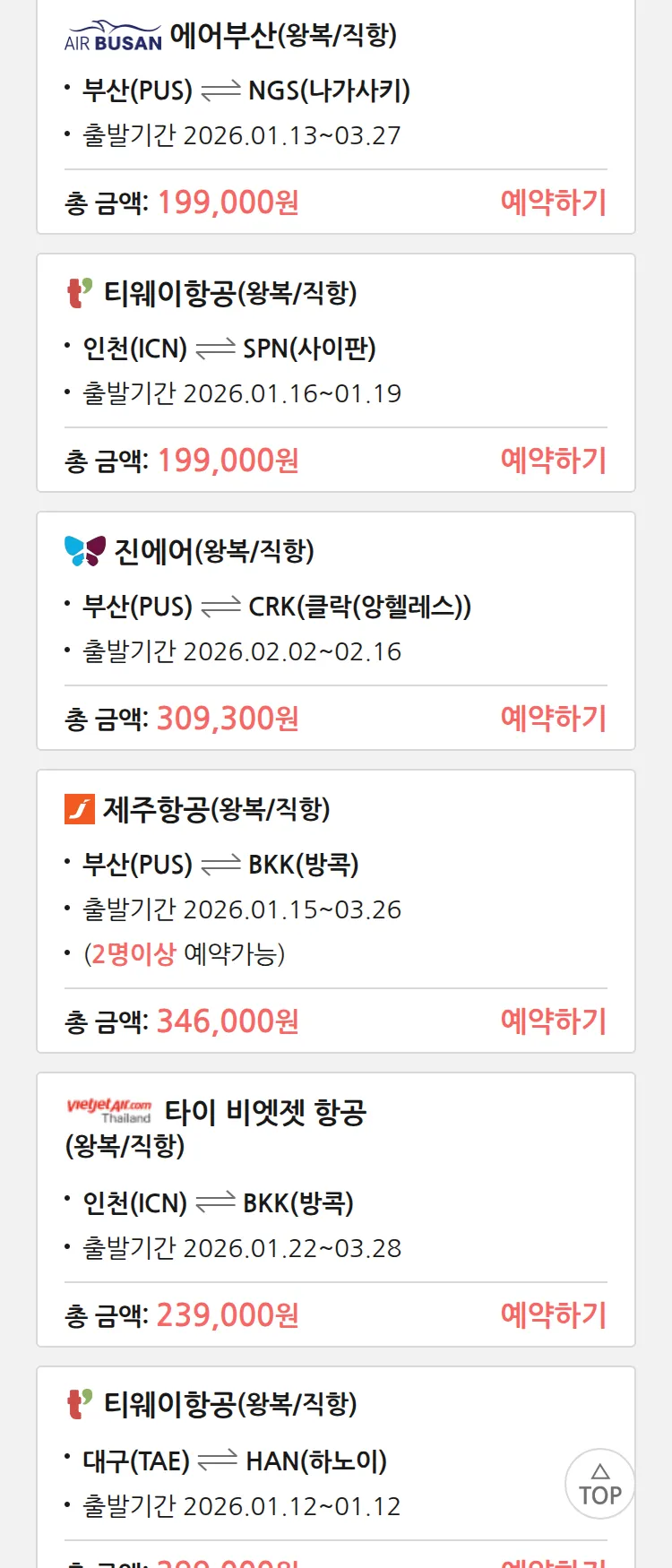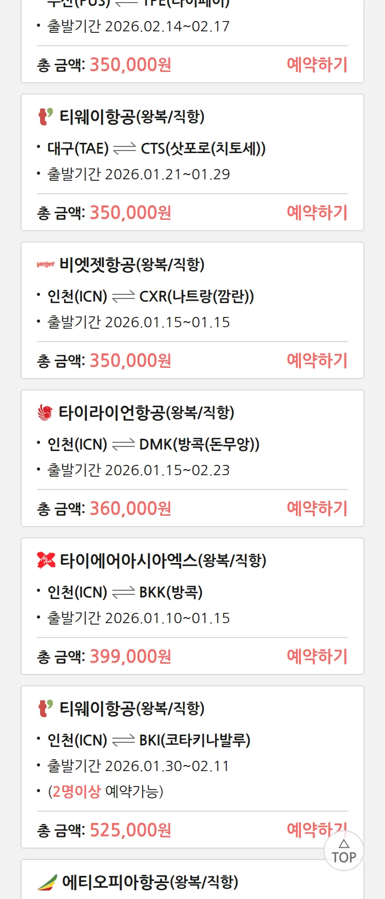 (1월8일(목)) 땡처리 99.9% 확정 패키지