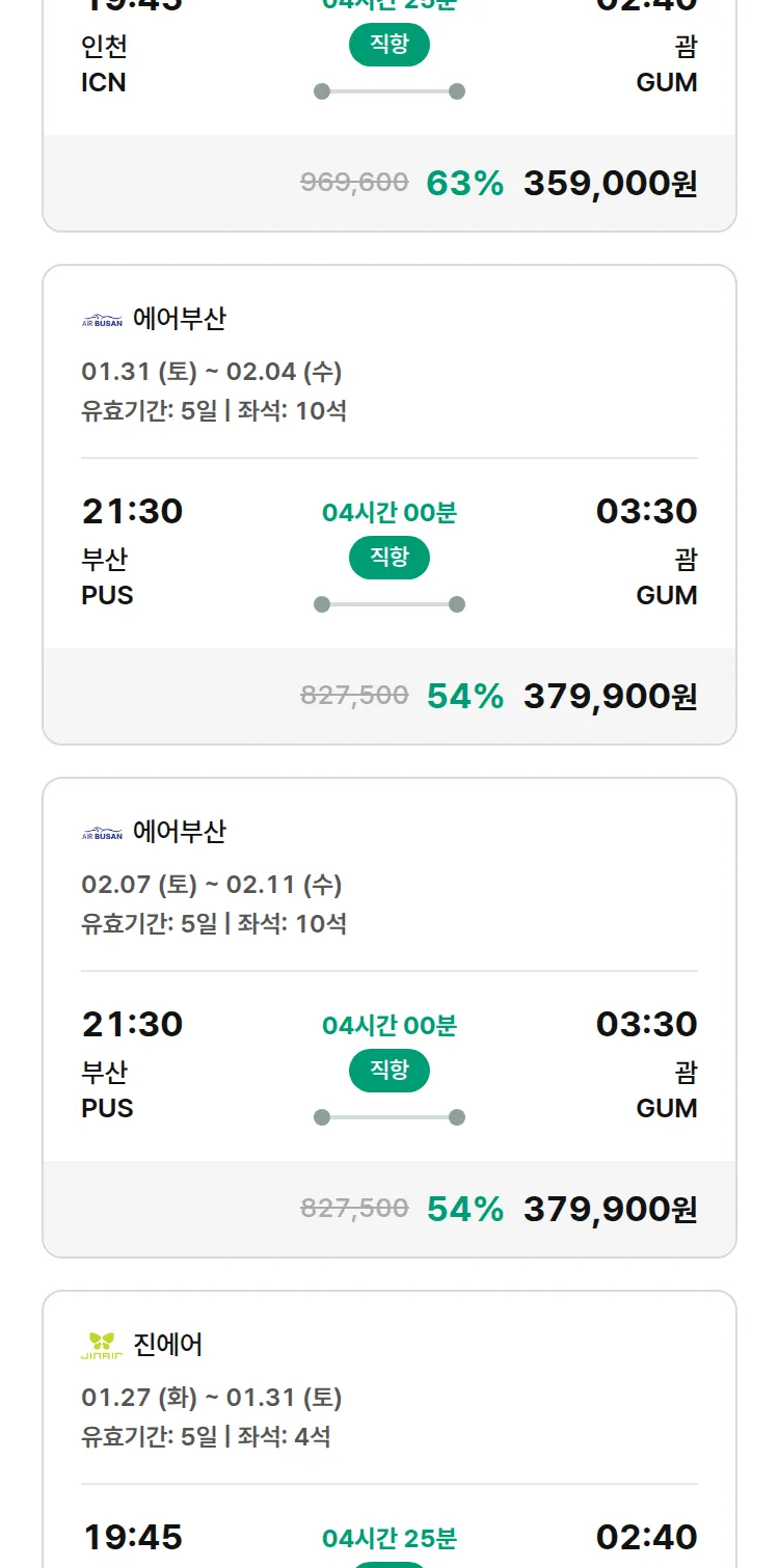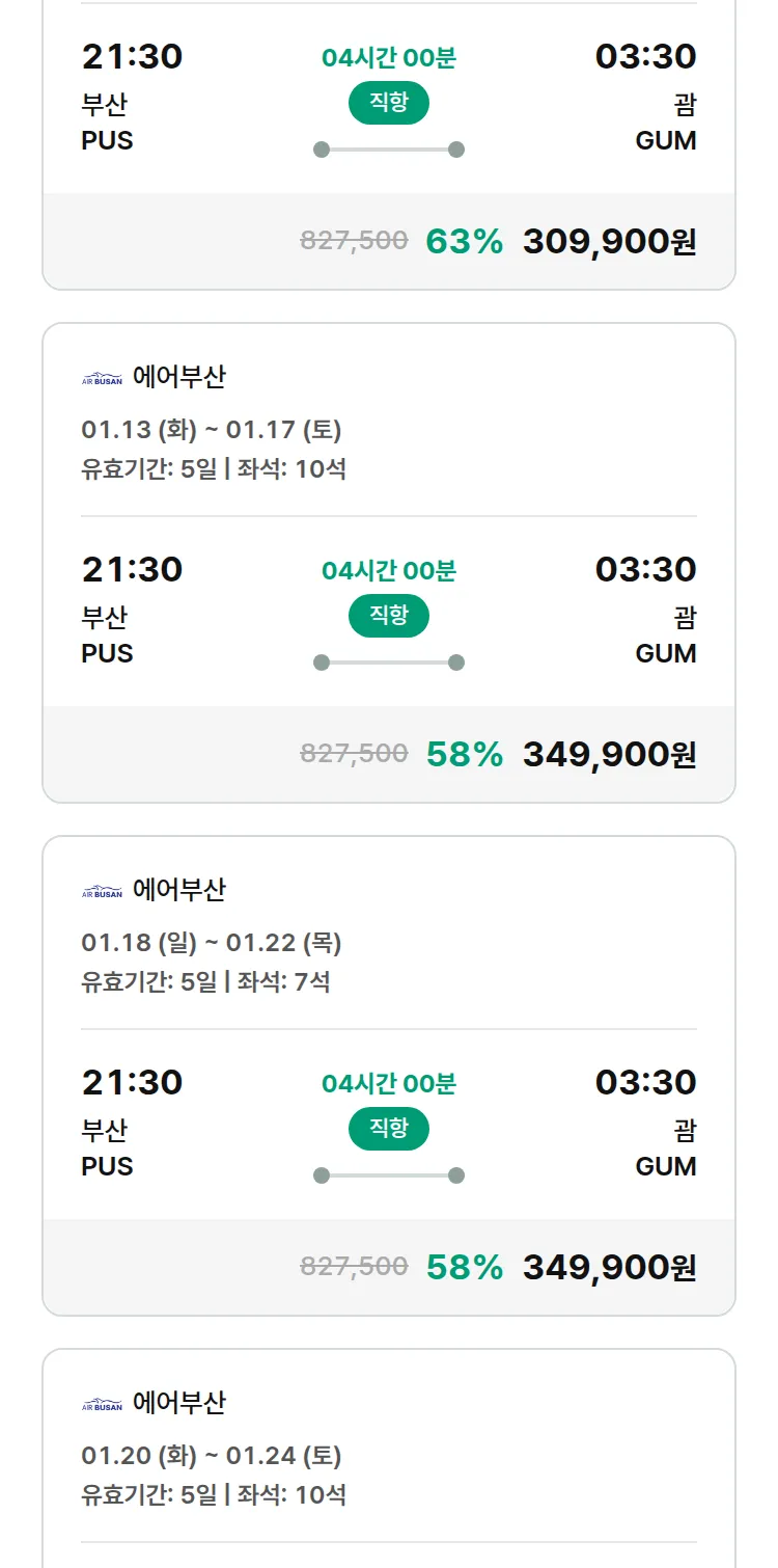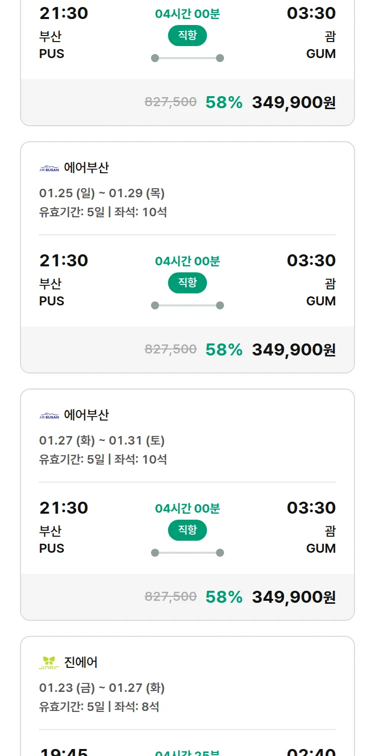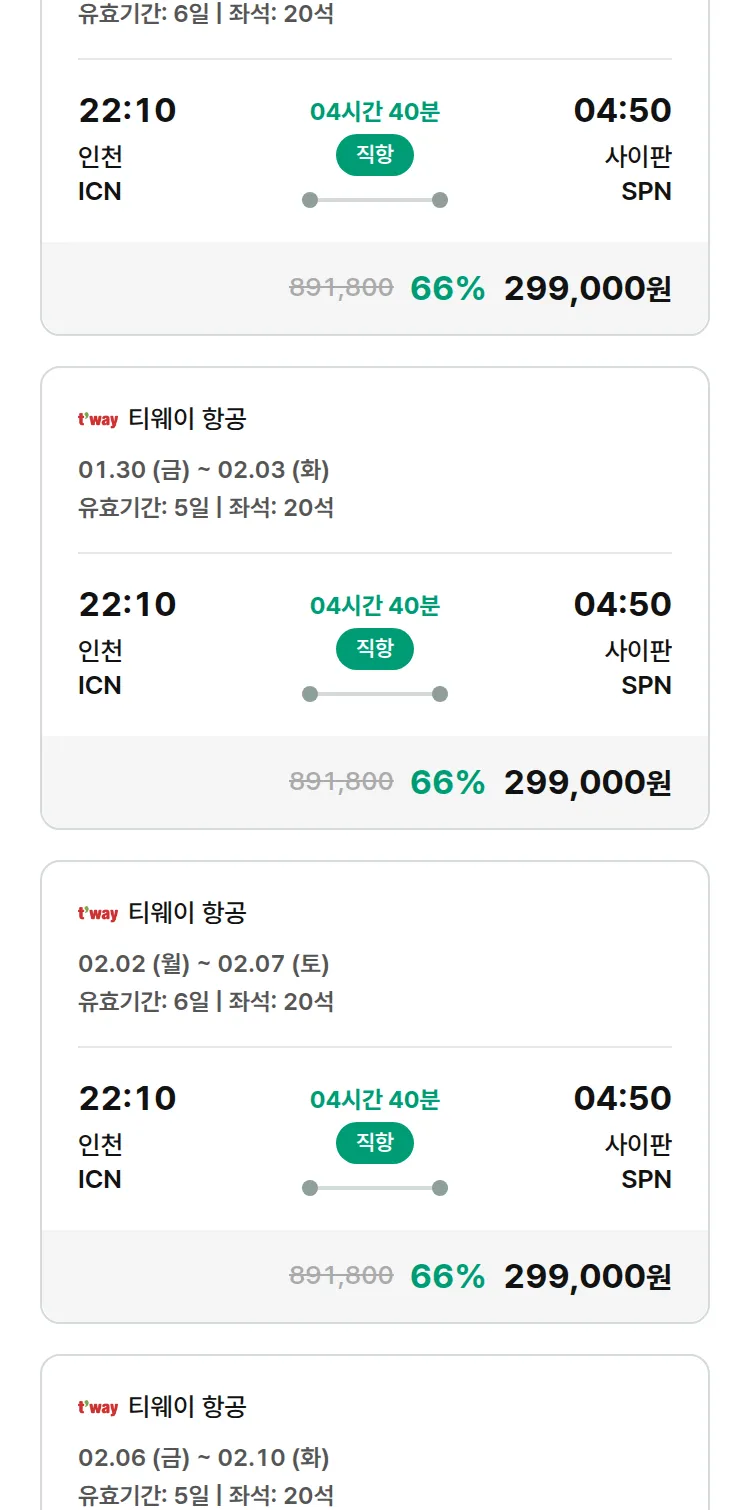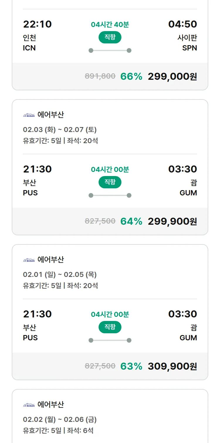 (1월7일(수)) 땡처리 특가 항공권