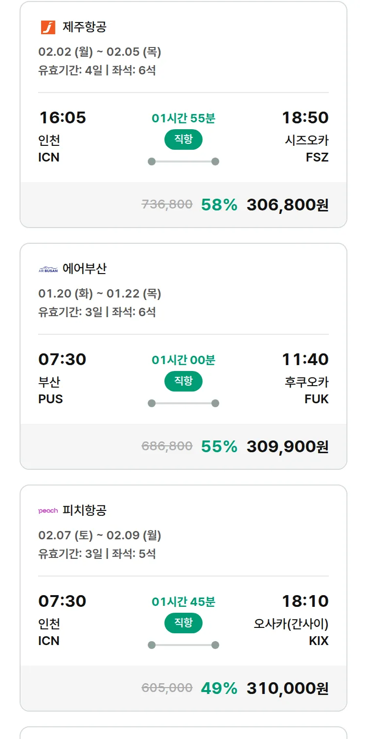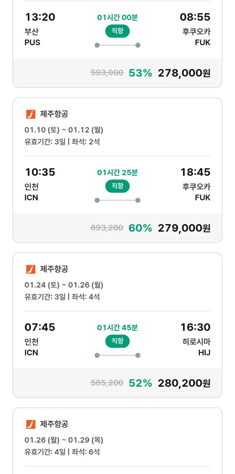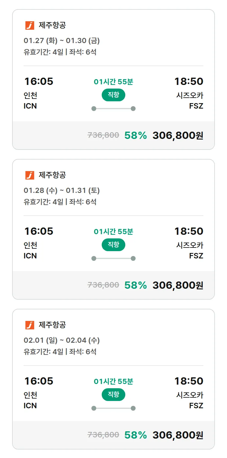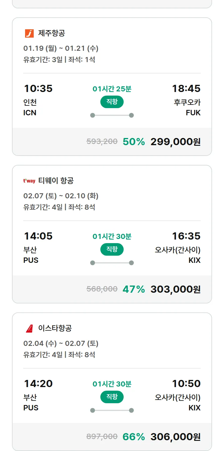 (1월8일(목)) 모두투어 일본 특가 항공권