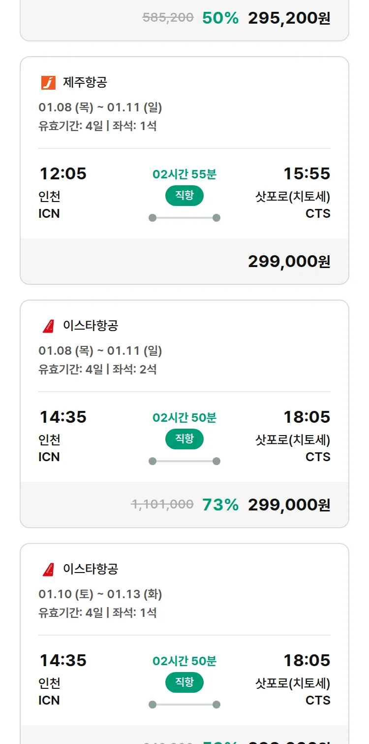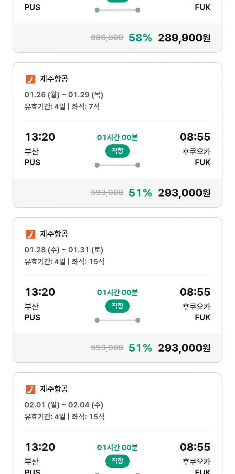 (1월8일(목)) 땡처리 99.9% 확정 패키지