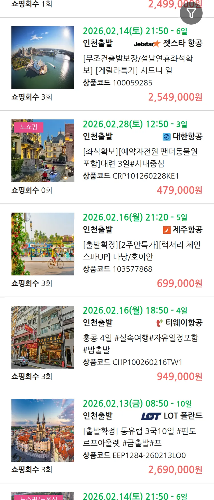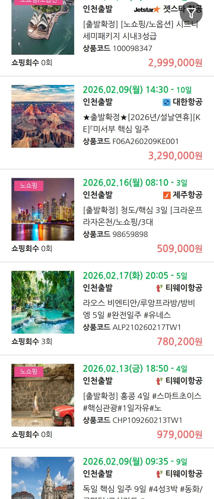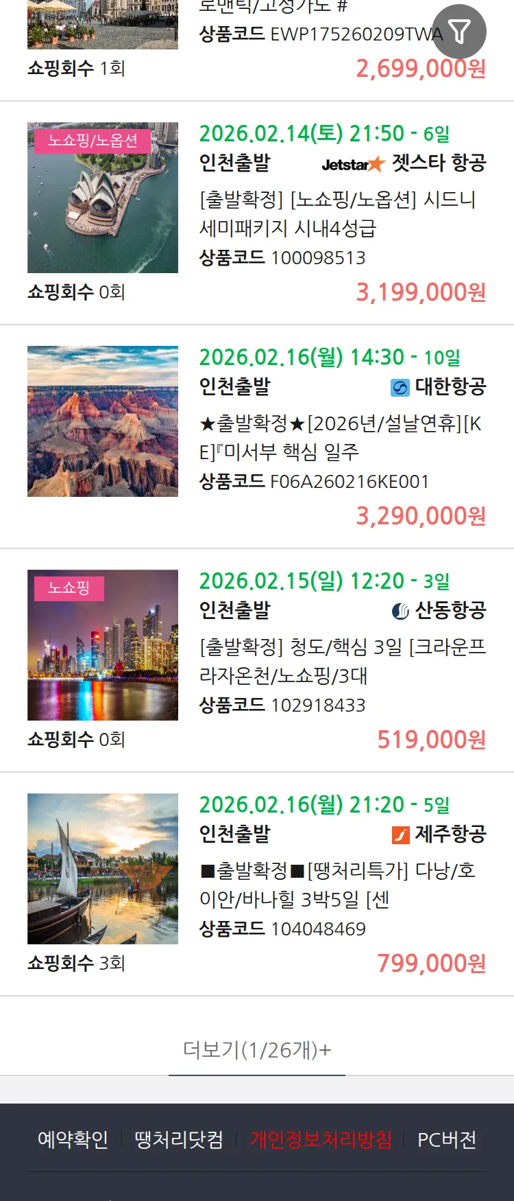 (1월9일(금)) 땡처리 99.9% 확정 패키지