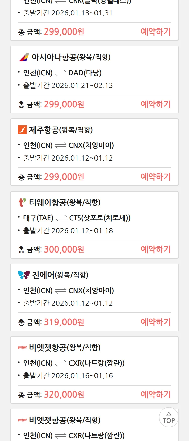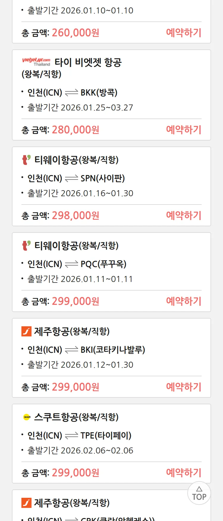 (1월8일(목)) 땡처리 99.9% 확정 패키지