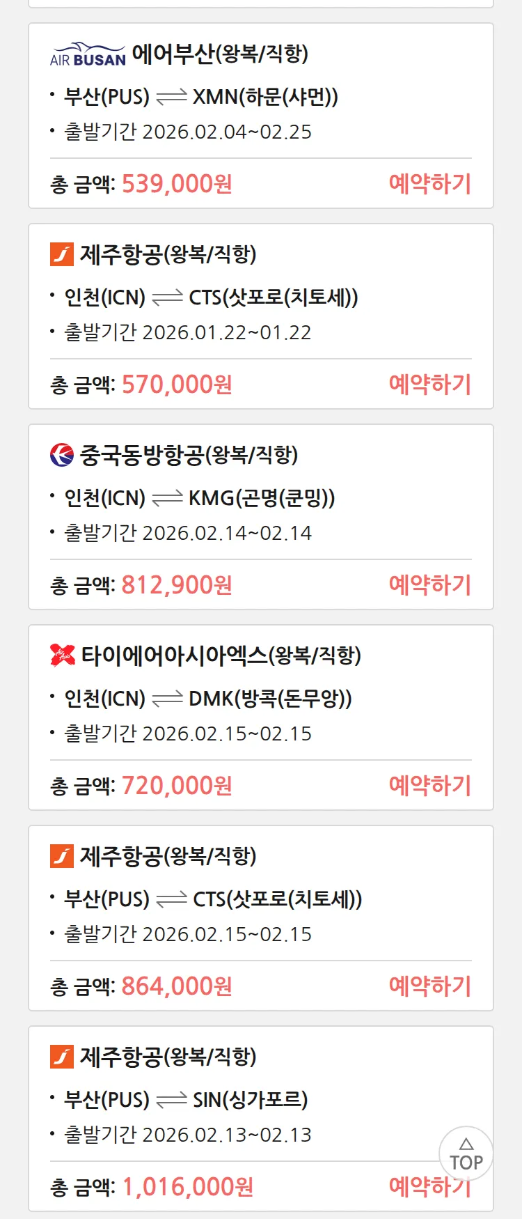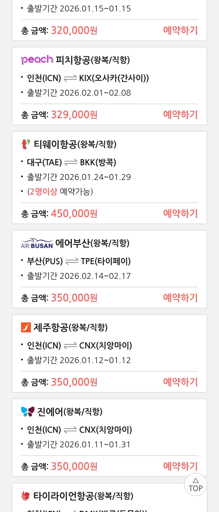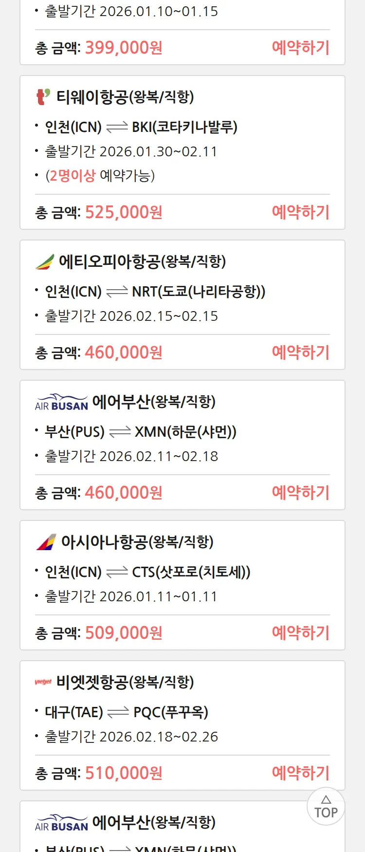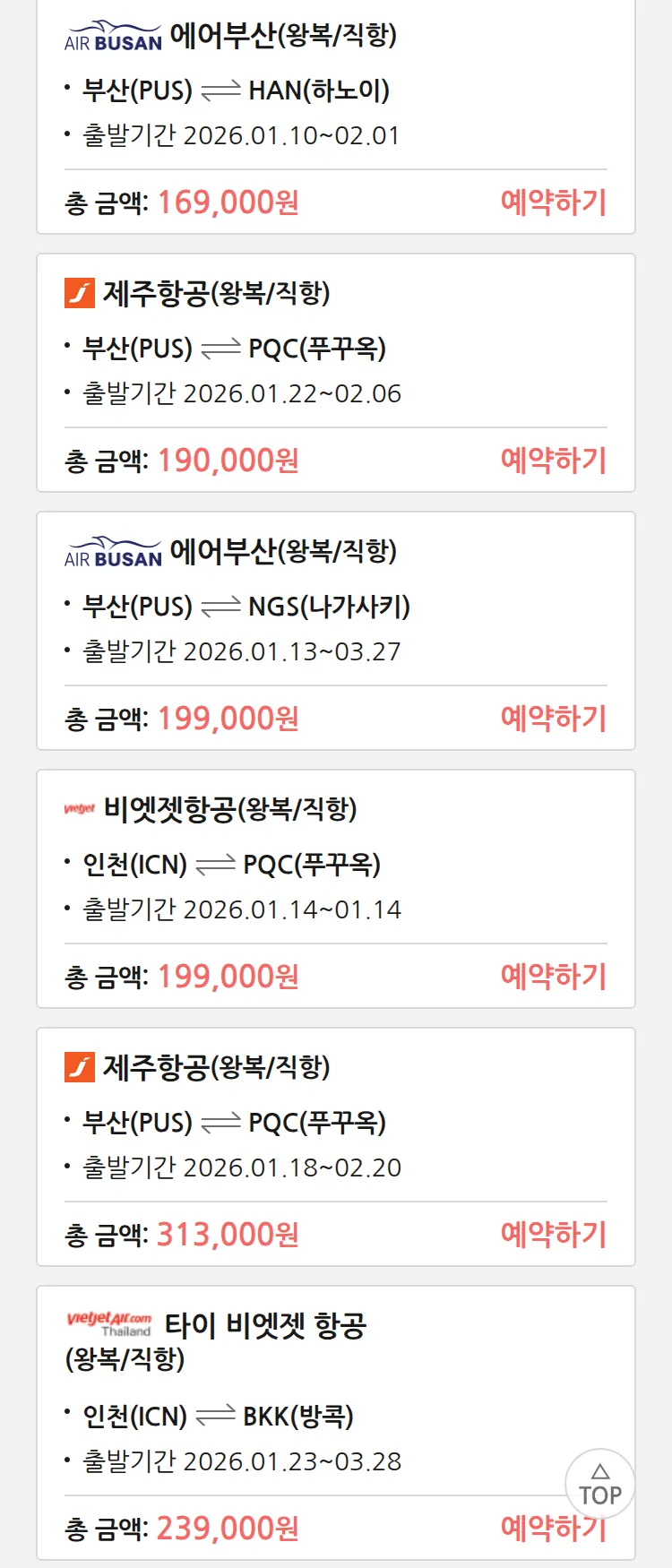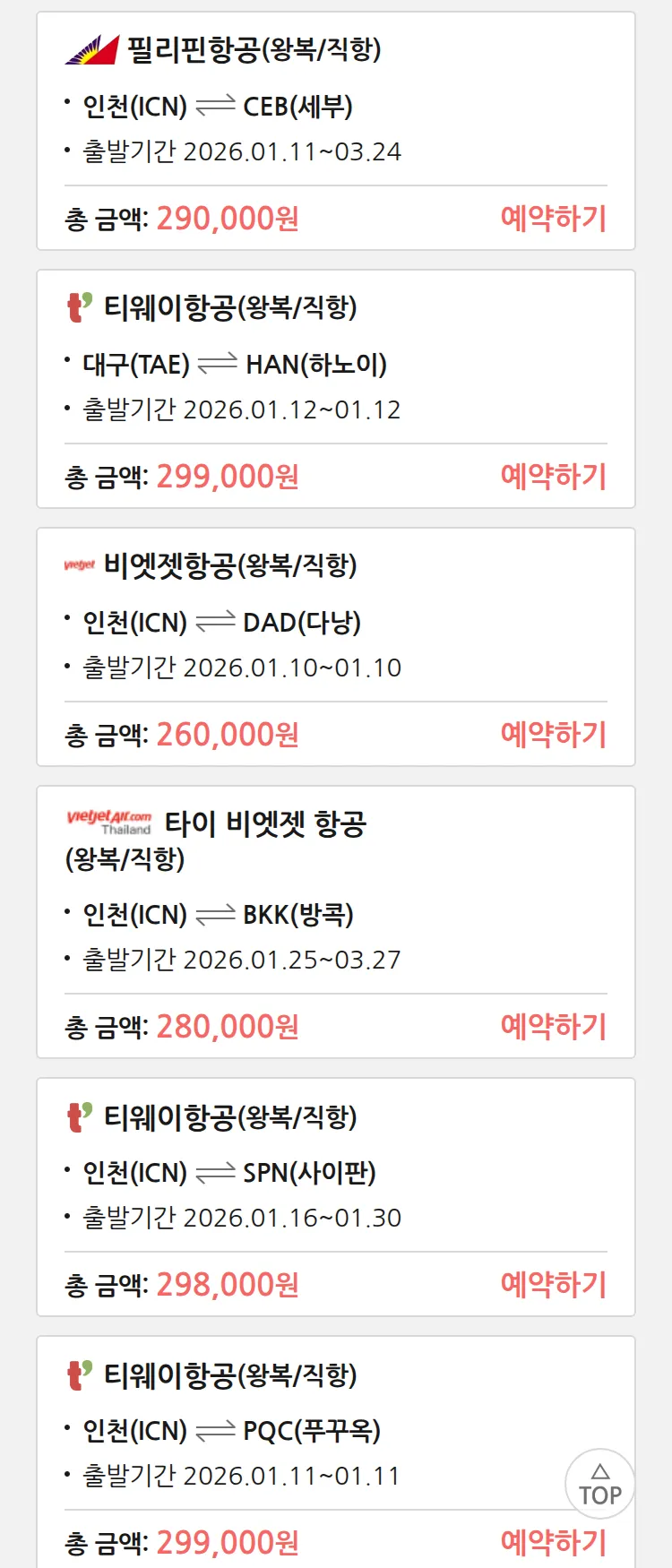 (1월7일(수)) 땡처리 99.9% 확정 패키지