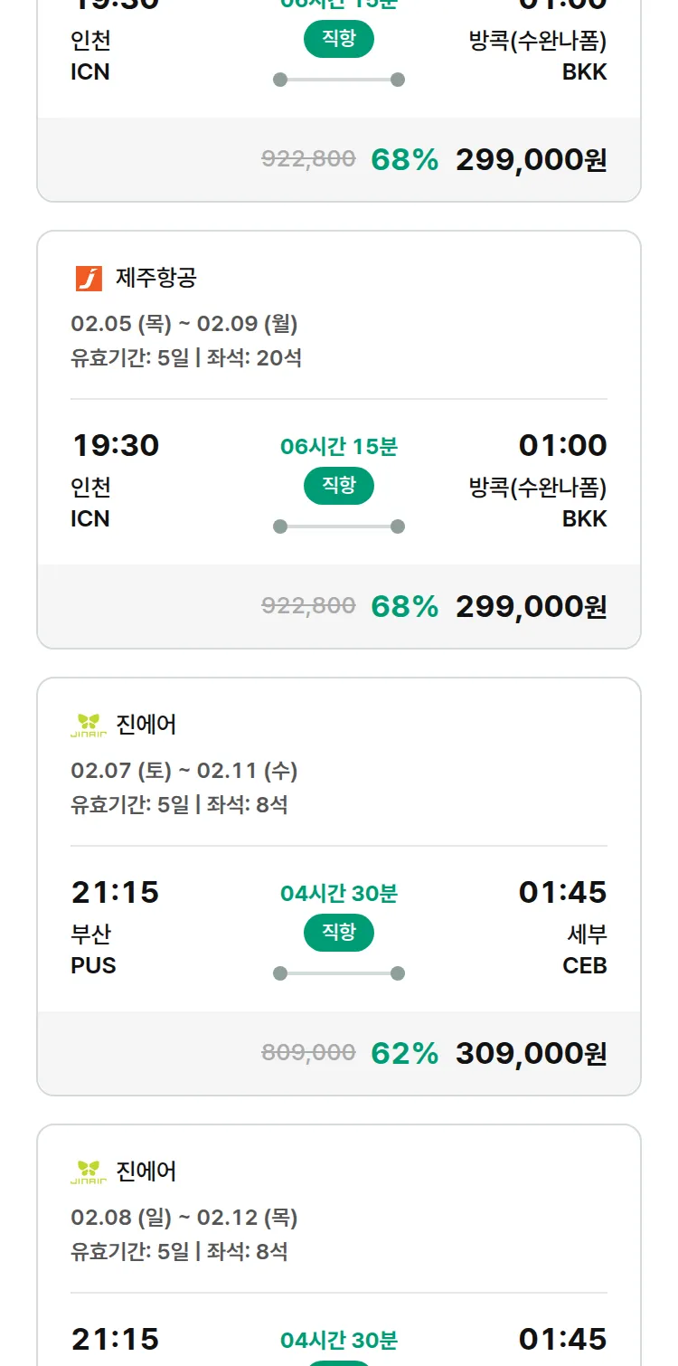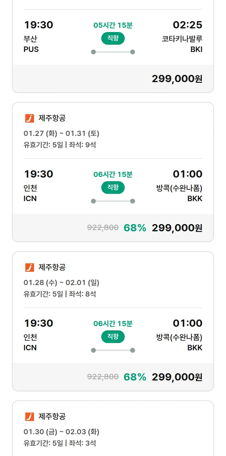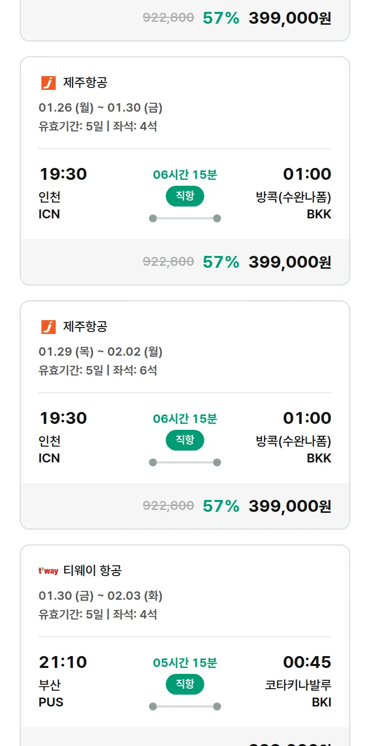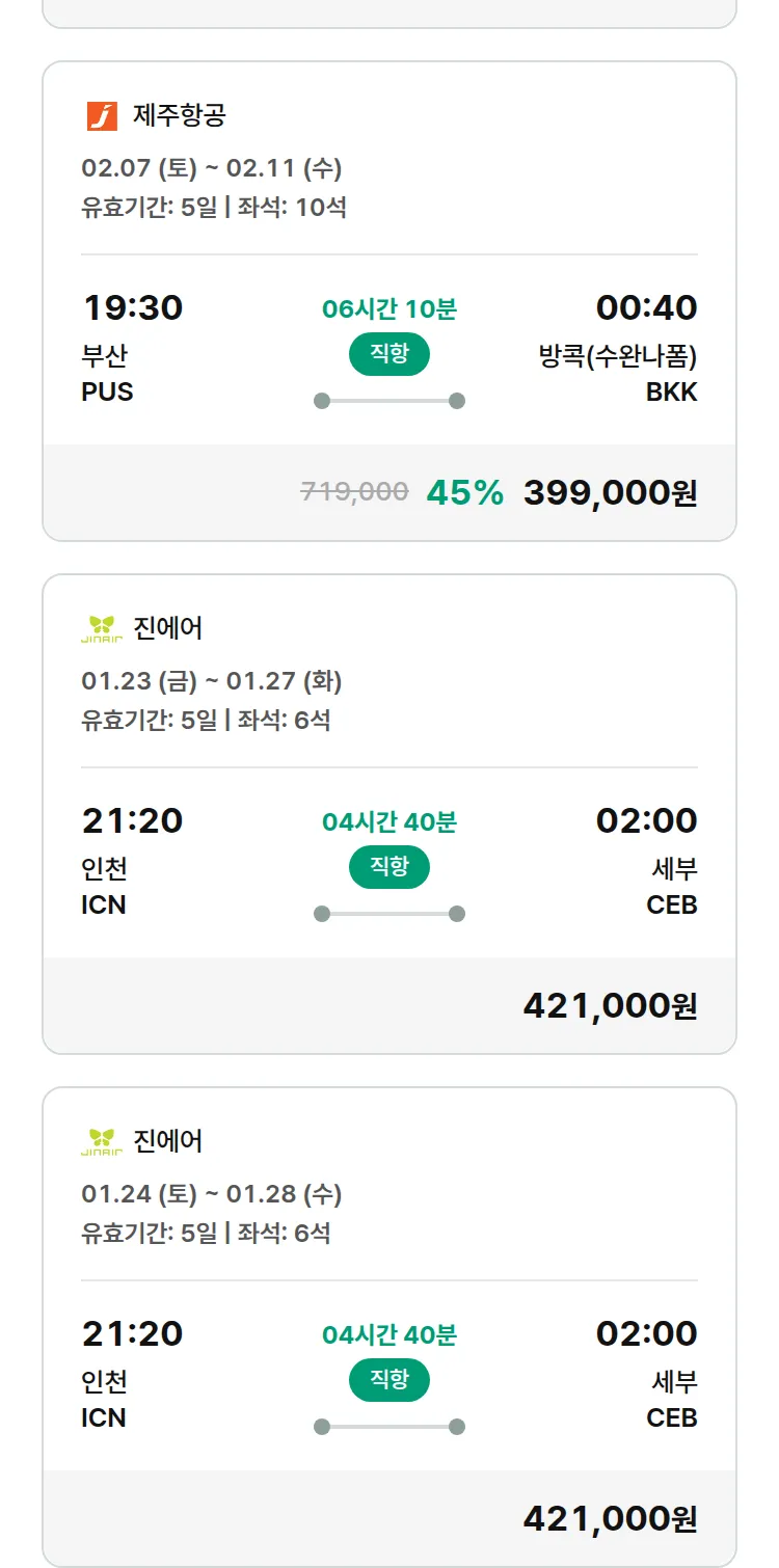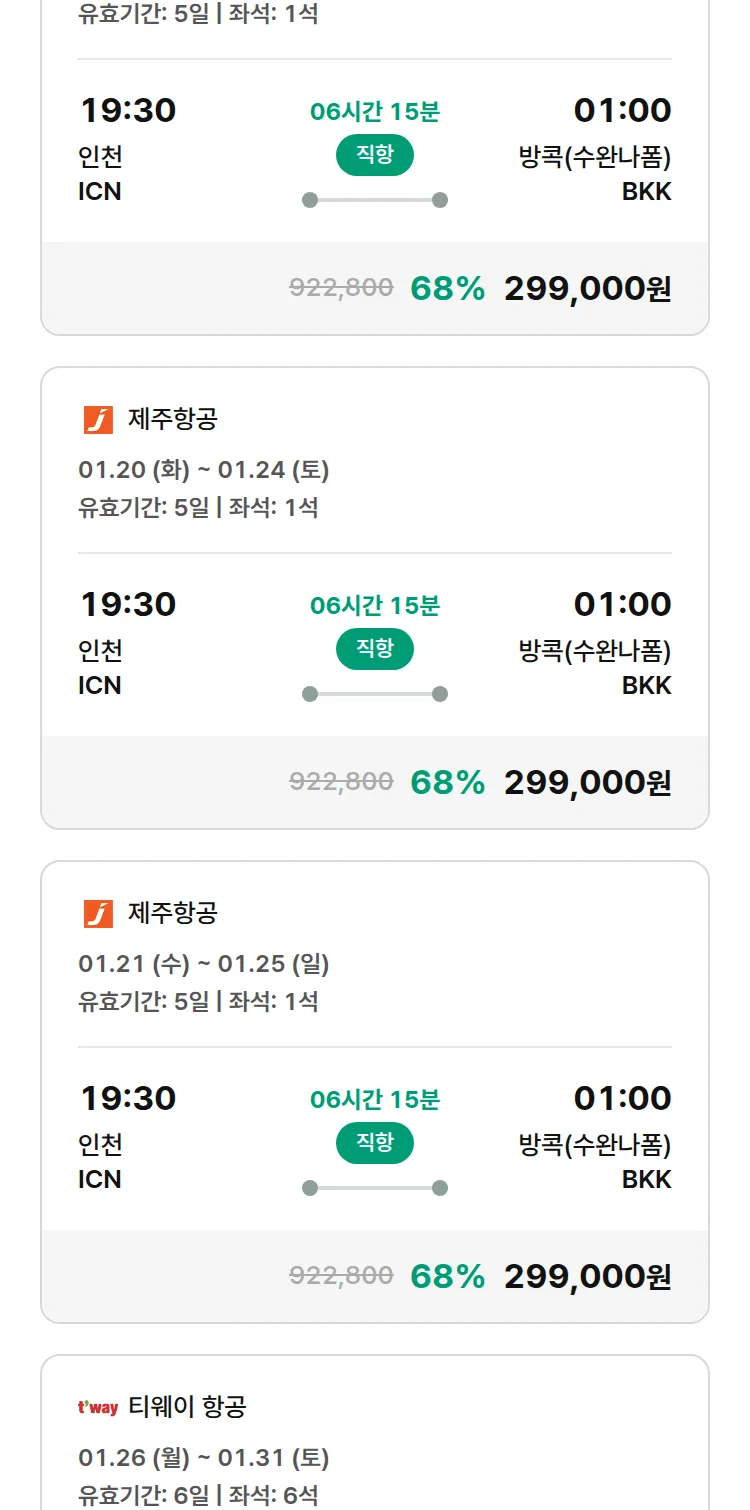 (1월7일(수)) 땡처리 특가 항공권