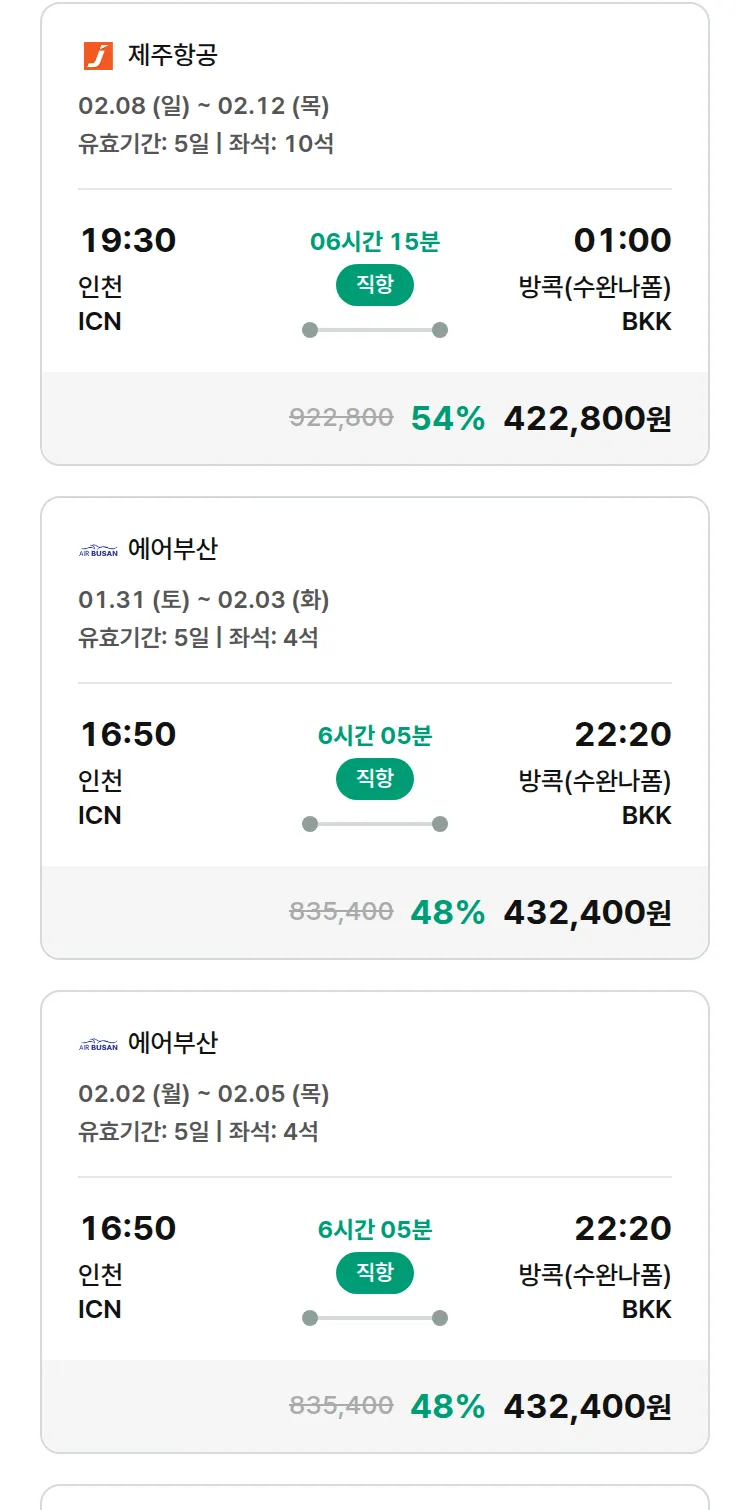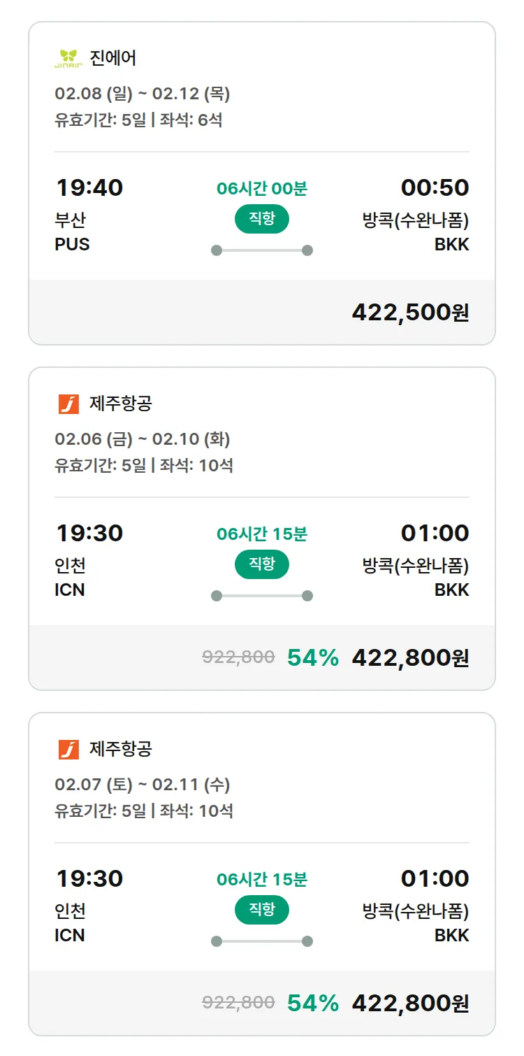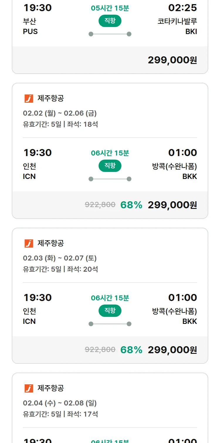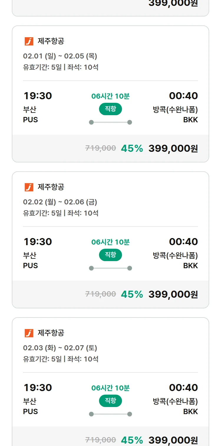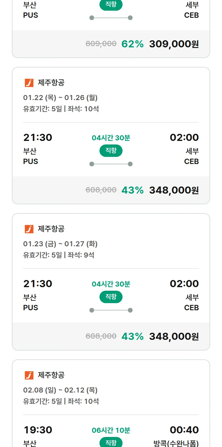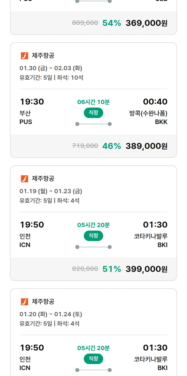 (1월7일(수)) 땡처리 특가 항공권
